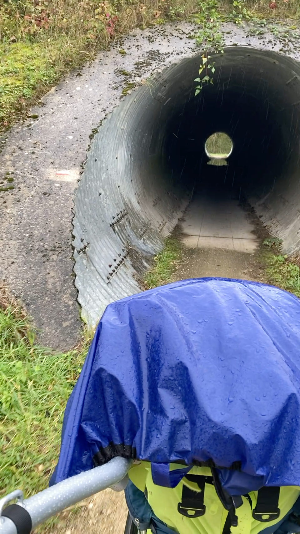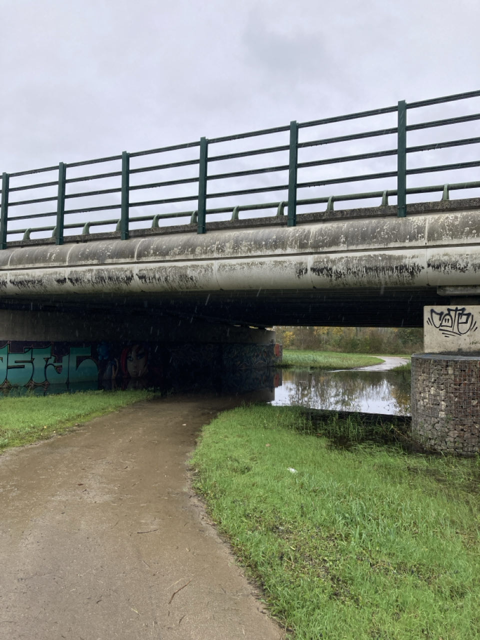 La piste cyclable est inondée et je passe par un tunnel un peu moins inondé.