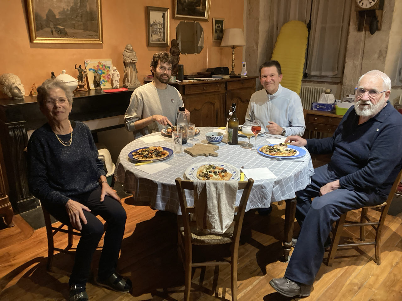Sur les photos : soirée pizzas au four 🍕avec Françoise, Paulo, Manuel et Jean ; le jardin de Françoise ; balade de nuit dans Chatillon jusqu’à l’église Saint-Vorles ; la résurgence de la Douix ; la Seine 🤩