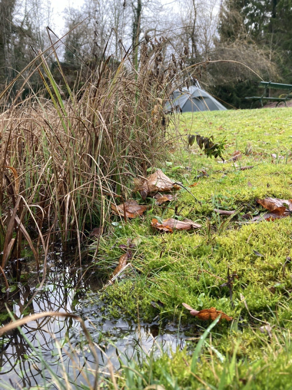 Ce soir, j’ai quitté le gîte et j’ai planté ma tente juste au bord de l’eau, dans le creux du premier méandre. 🏕️ L’eau s’écoule en silence, je la vois à peine se faufiler entre la végétation. C’est important pour moi de passer une dernière soirée dehors près de la Seine avec les oiseaux, avec le froid et avec mon duvet sur les genoux, comme à la maison.