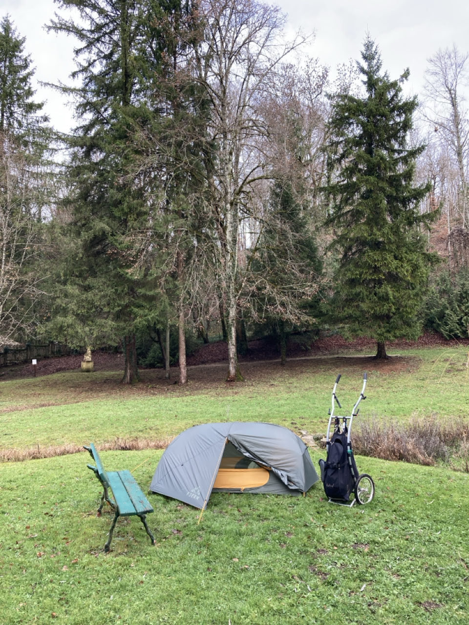 Parfois, ça m’étonne moi-même… Il a beau faire froid et humide, je suis toujours contente d’être sous ma tente.