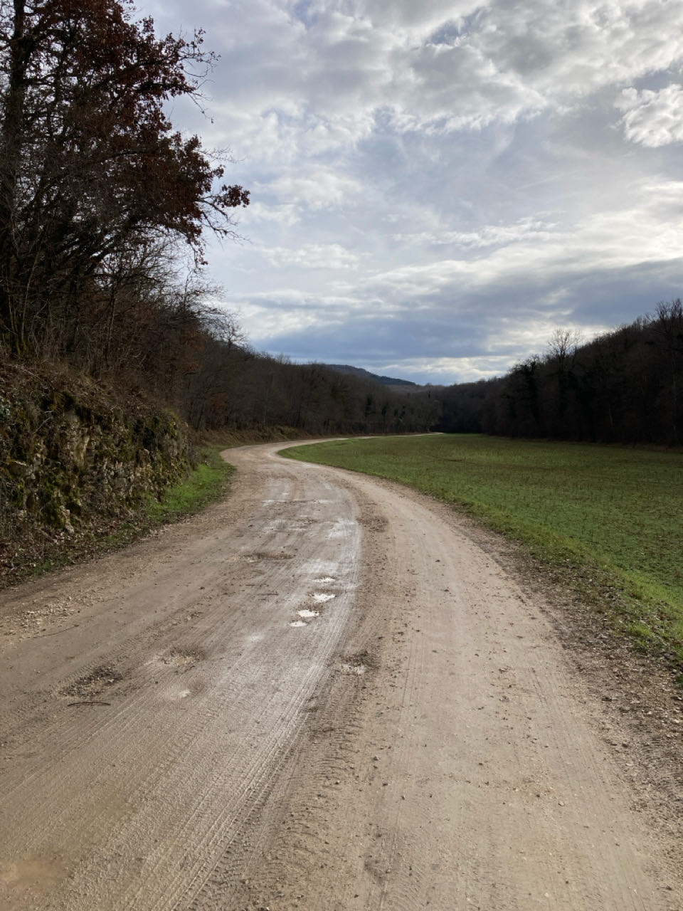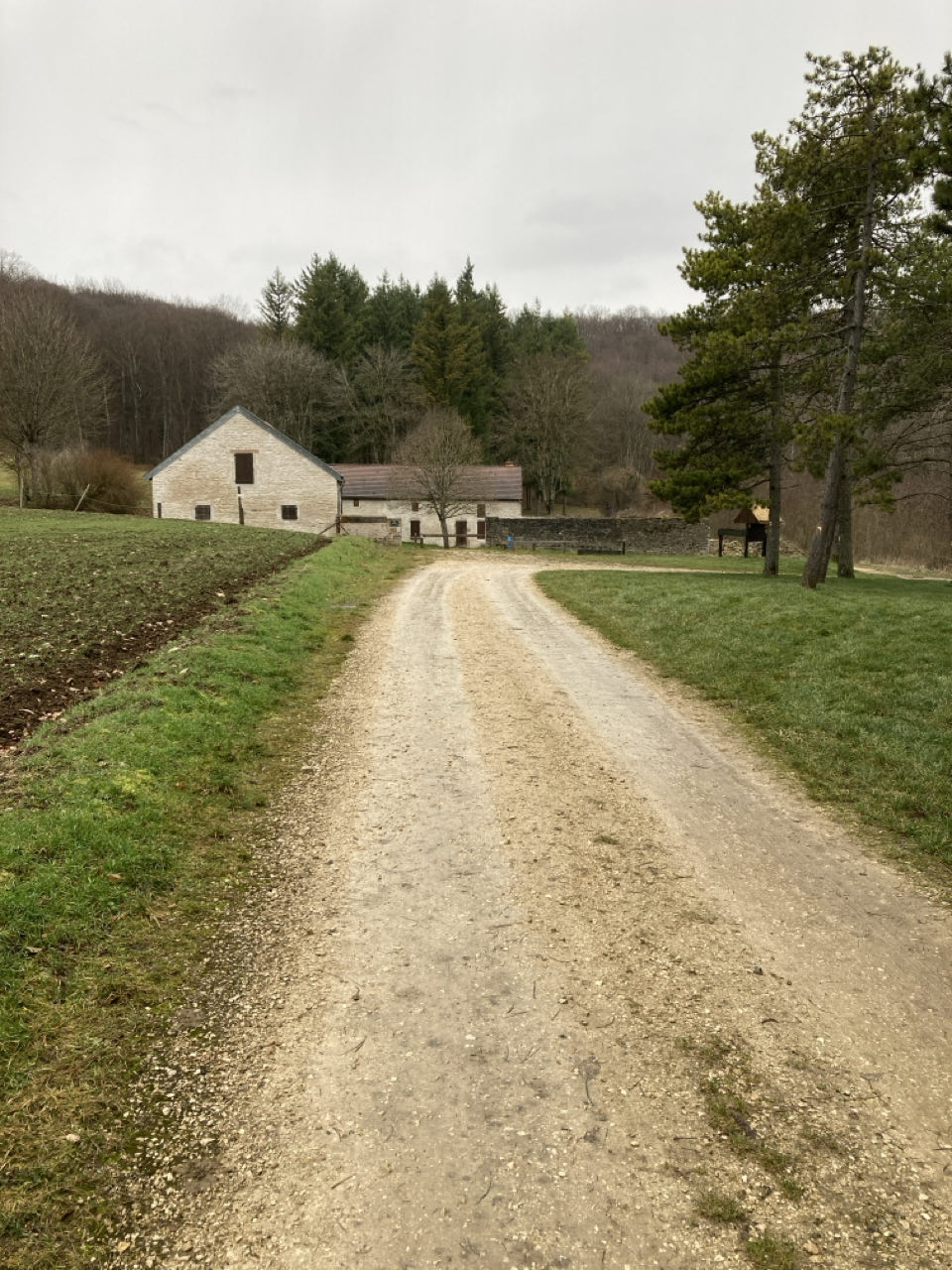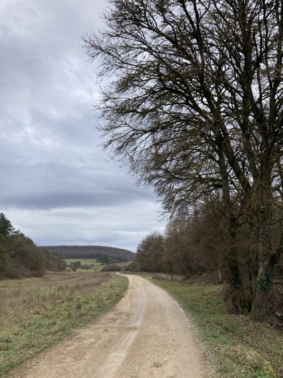 Je m’enfonce sur le plateau calcaire de l’arrière-côte dijonnaise. Chemin en fond de vallée qui grimpe doucement… Il pleut un peu vers 15h, mais je continue, j’ai envie d’arriver !