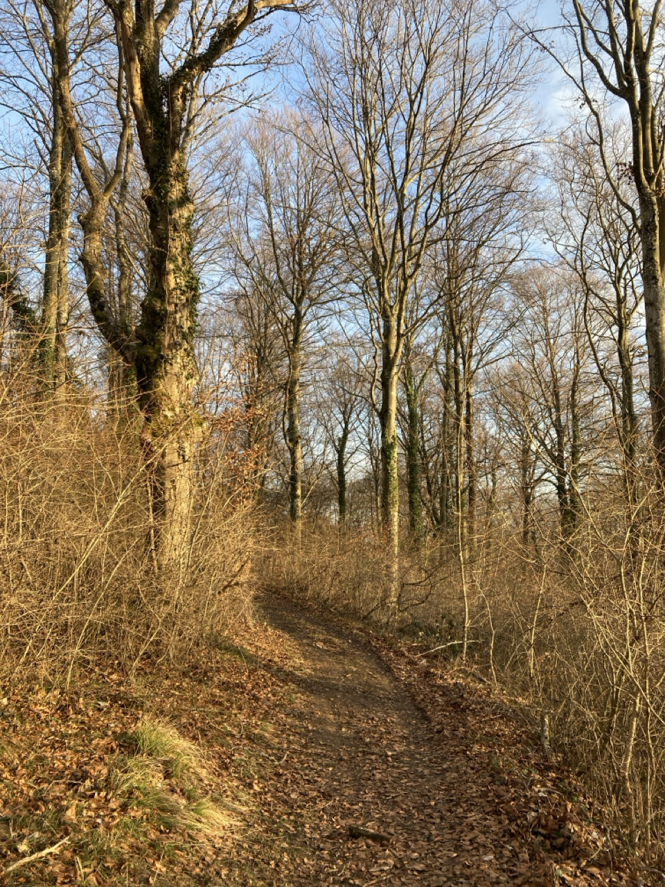 Je suis rentrée seule au refuge. J’avais envie de marcher un peu. La lumière déclinait, c’était beau. La forêt était calme jusqu’à ce que je me retrouve au milieu d’une chasse… ❌ Cris d’hommes, gilets oranges sur le chemins, aboiements de chiens, corne de chasse. Ils « levaient » les sangliers. Super 😓