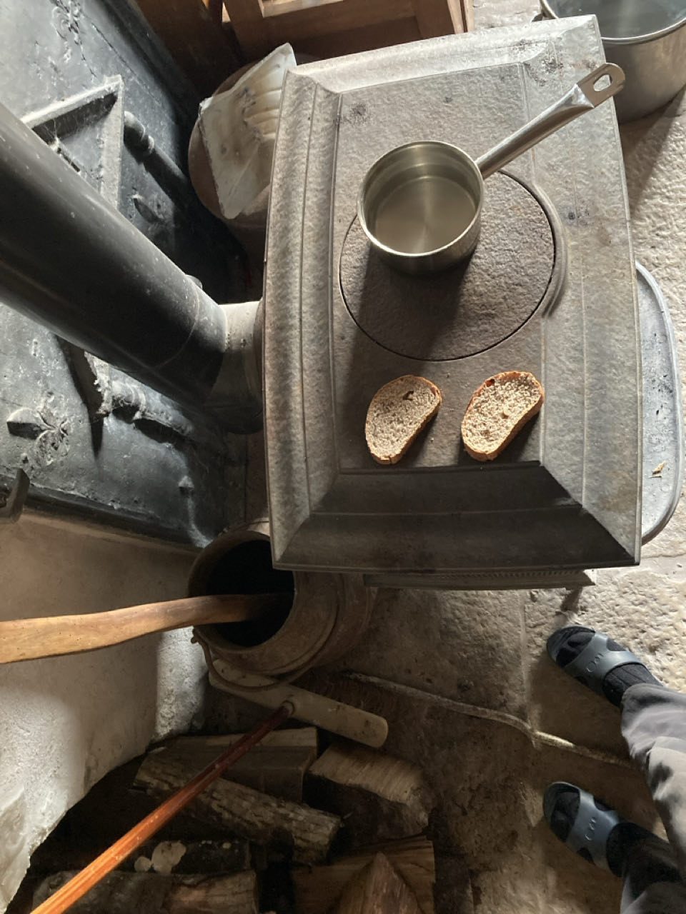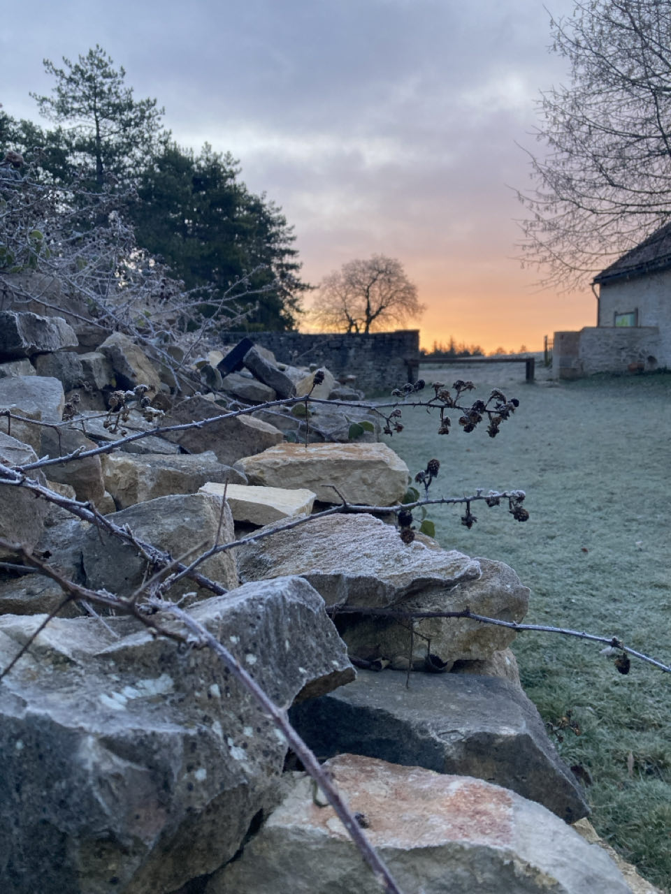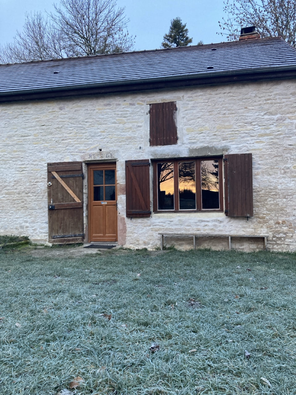 Mardi 20 janvier - Jour 326 8h20. Ce matin, un paysage gelé et du pain qui grille sur le poêle.