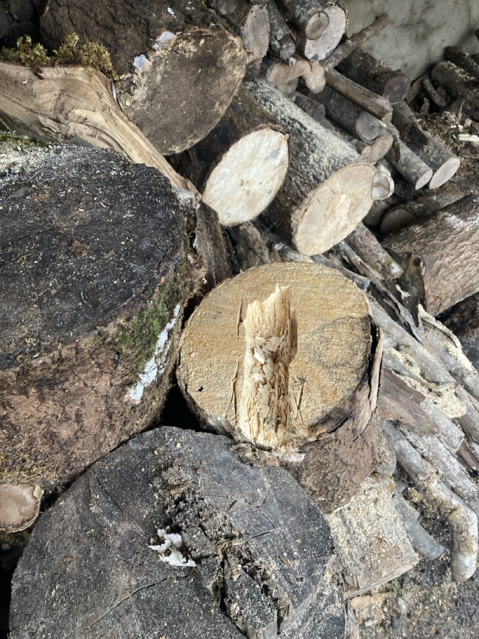Bon… ça ne marche pas à tous les coups… Il me faudrait des coins parce que je n’arrive pas à fendre les bûches en deux 😖