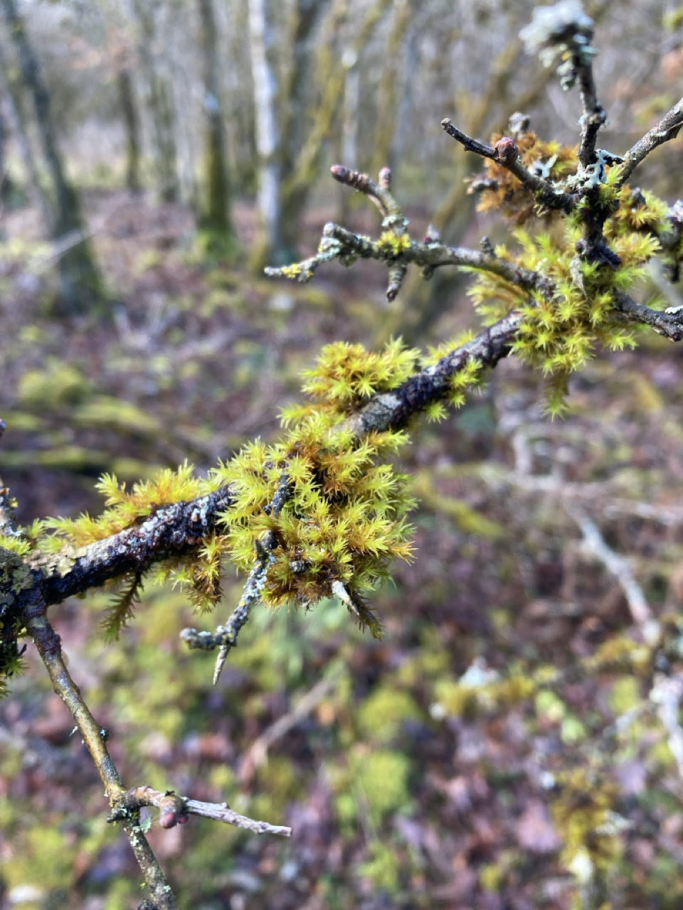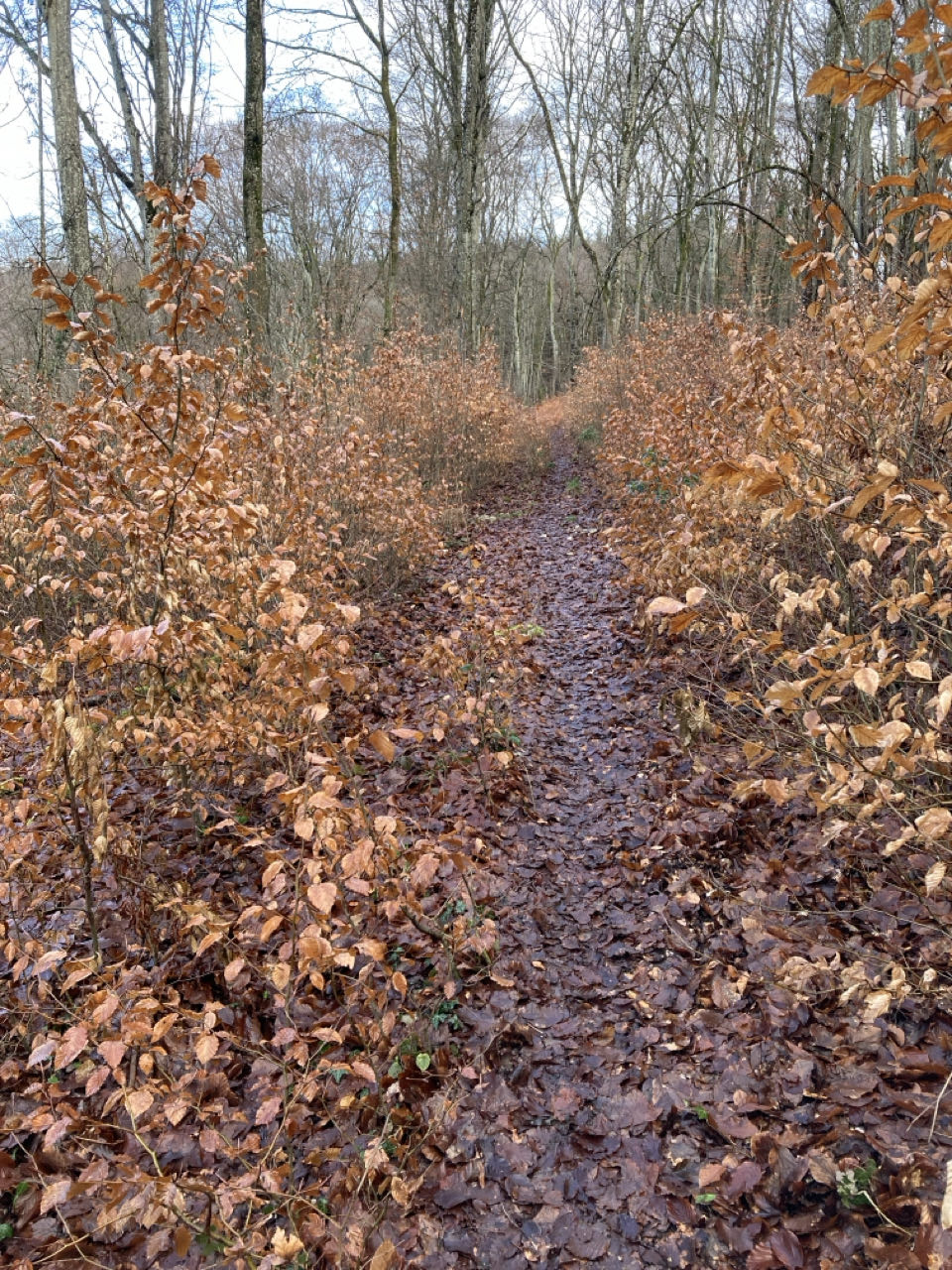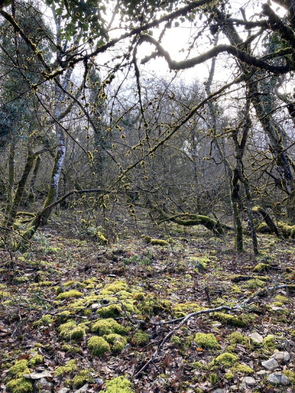 Dans la forêt, les geais des chênes donnent l’alerte. Ma présence est repérée. Un peu plus loin, je découvre des empreintes de blaireaux. 🦡 Les couleurs sont magnifiques, feuilles orangées, mousses verdoyantes, prairies dorées, ciel bleu.