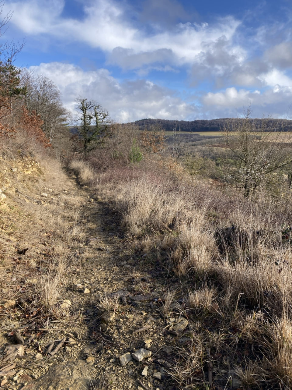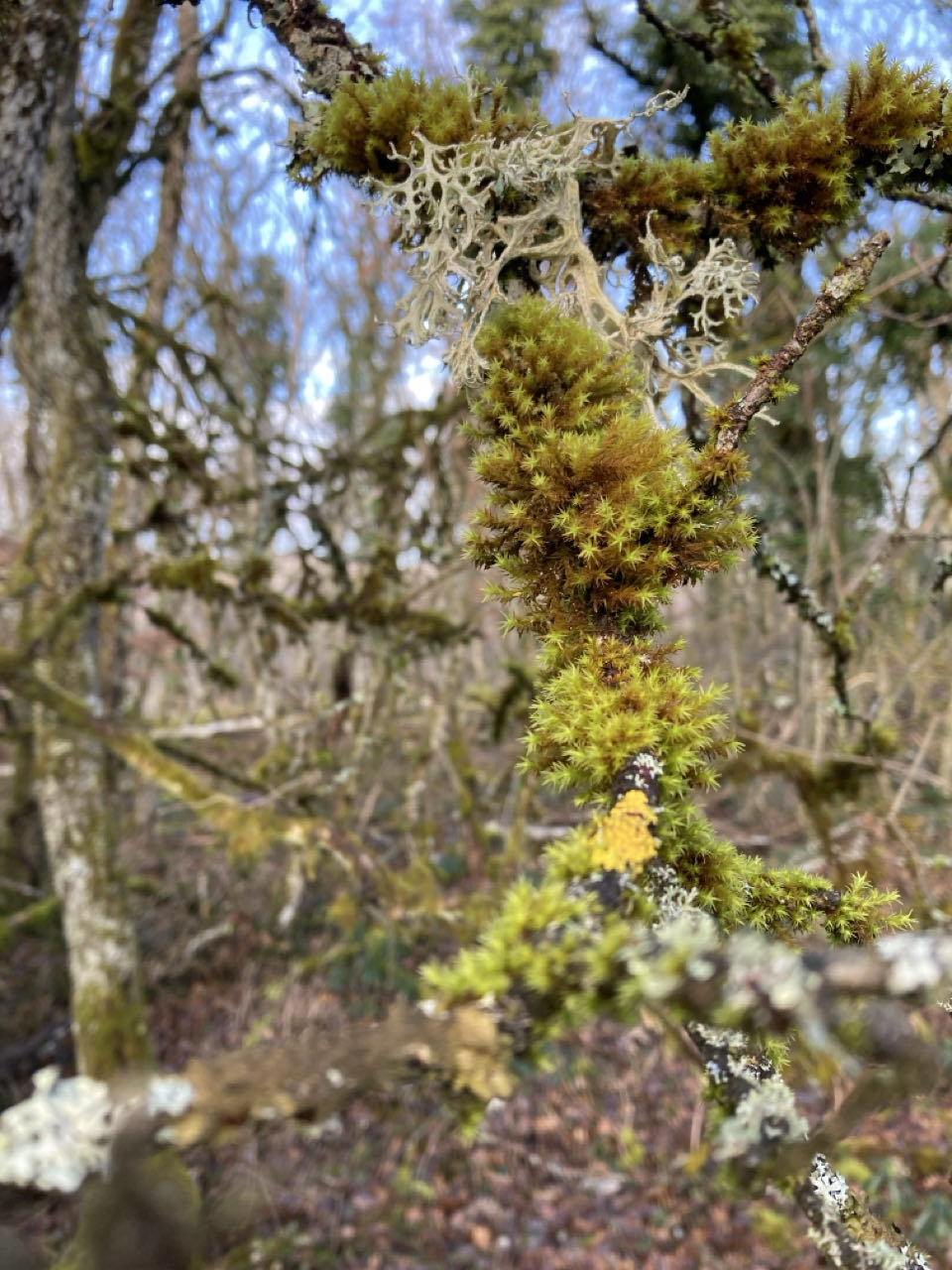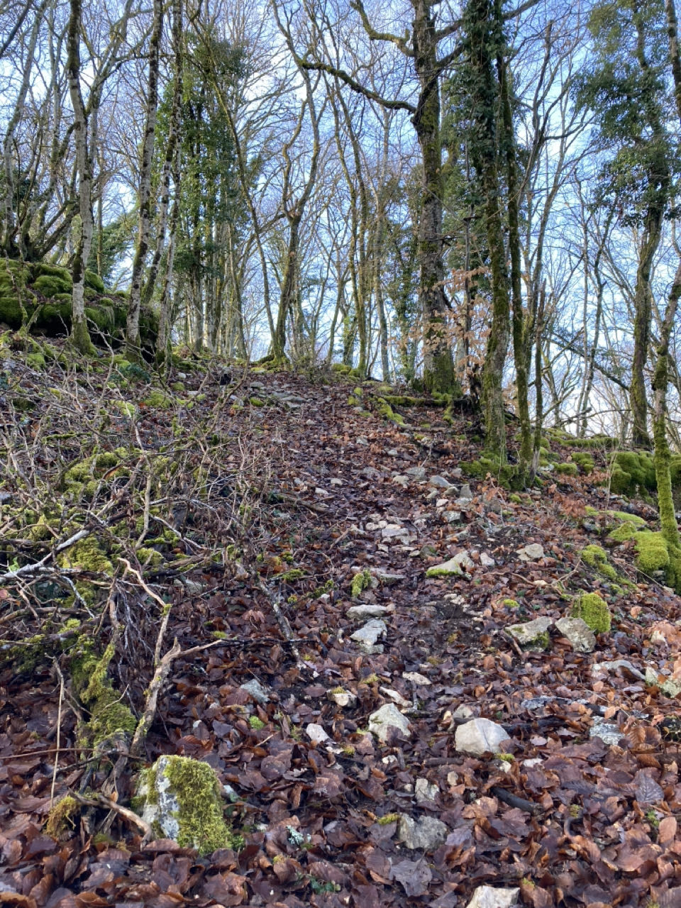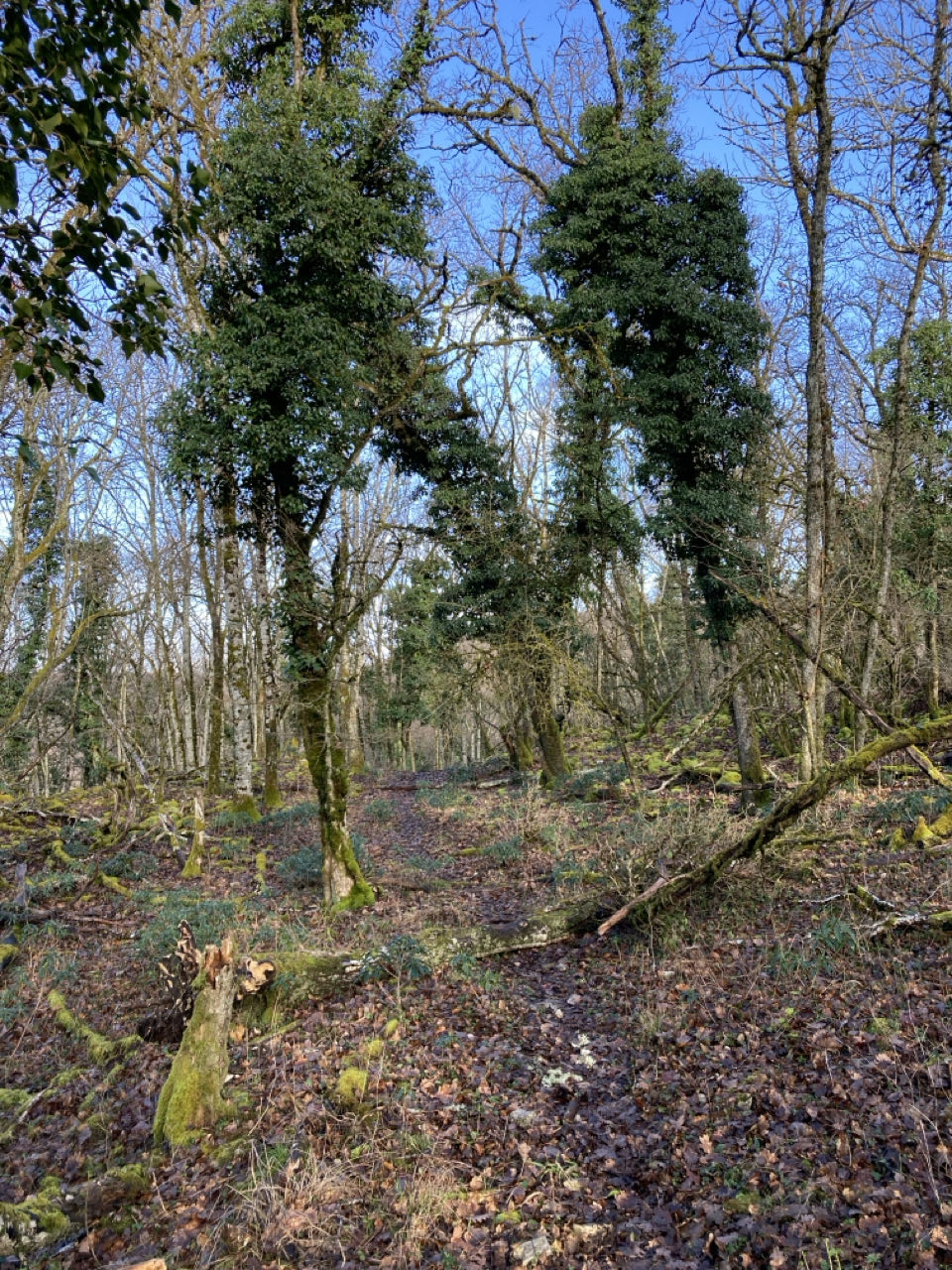 Dans la forêt, les geais des chênes donnent l’alerte. Ma présence est repérée. Un peu plus loin, je découvre des empreintes de blaireaux. 🦡 Les couleurs sont magnifiques, feuilles orangées, mousses verdoyantes, prairies dorées, ciel bleu.