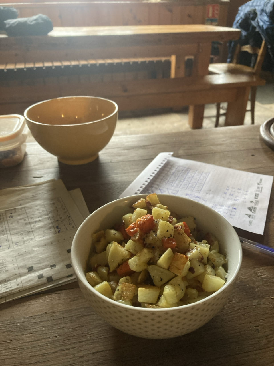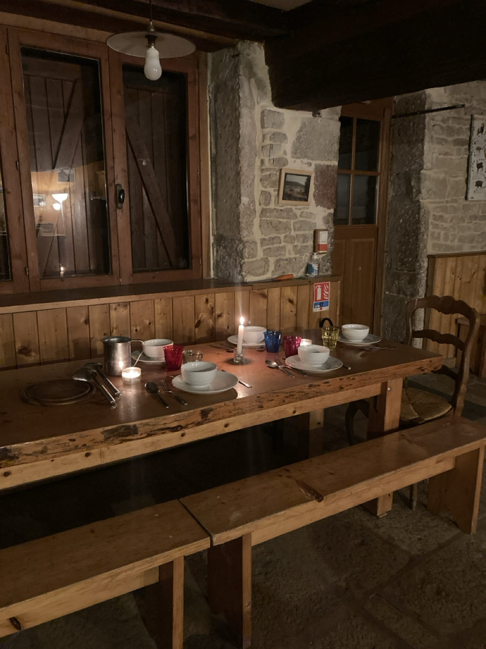À la lueur des bougies, Evelyne me met en contact avec son amie Véronique pour demain soir, François parle du point de vue secret au-dessus du village, Dominique qu’il a voyagé plus de 1000 km avec sa mobylette et sa cocotte minute pour cuisiner, et Anne-Marie raconte sa rencontre avec le dernier habitant de Chamerey, un berger qui a quitté la ferme en 1968 sous la pression de certains habitants du village parce qu’il n’était pas du coin... À un moment, iels parlent tous les quatre de vieux souvenirs communs et ça me fait plaisir de les voir ainsi.