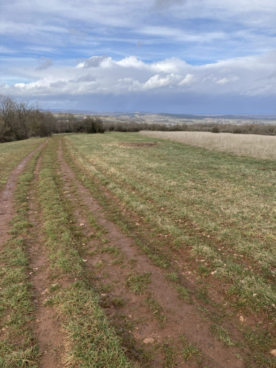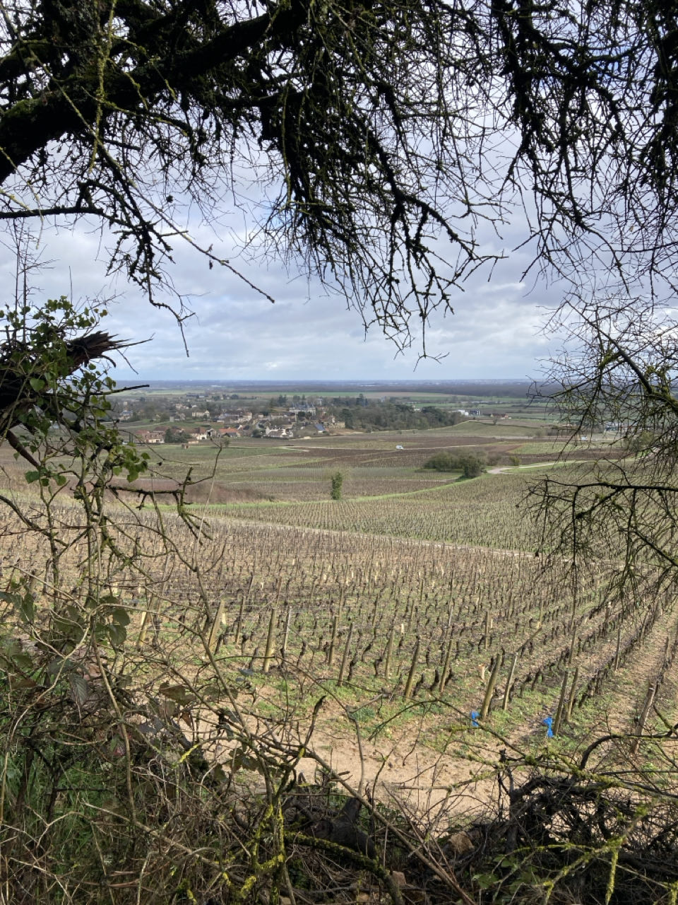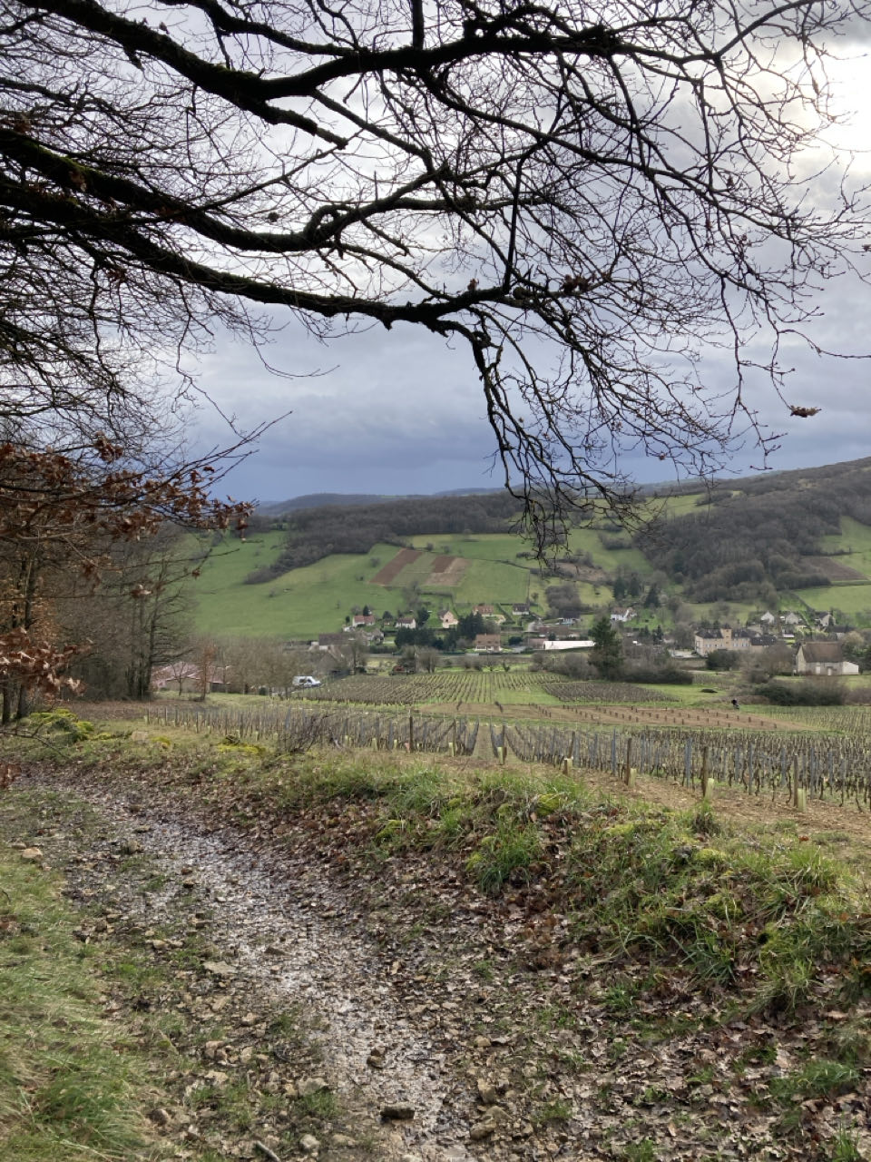 Je rentre à Moroges à pied. Ça monte et ça descend, mais ça vaut le coup. Les points de vue sont superbes. Il y a encore de la vigne mais la culture n’est pas écrasante. Après les mers de vignes dans la côte des Grands crus, les paysages vallonnés de la côte châlonnaise me plaisent.