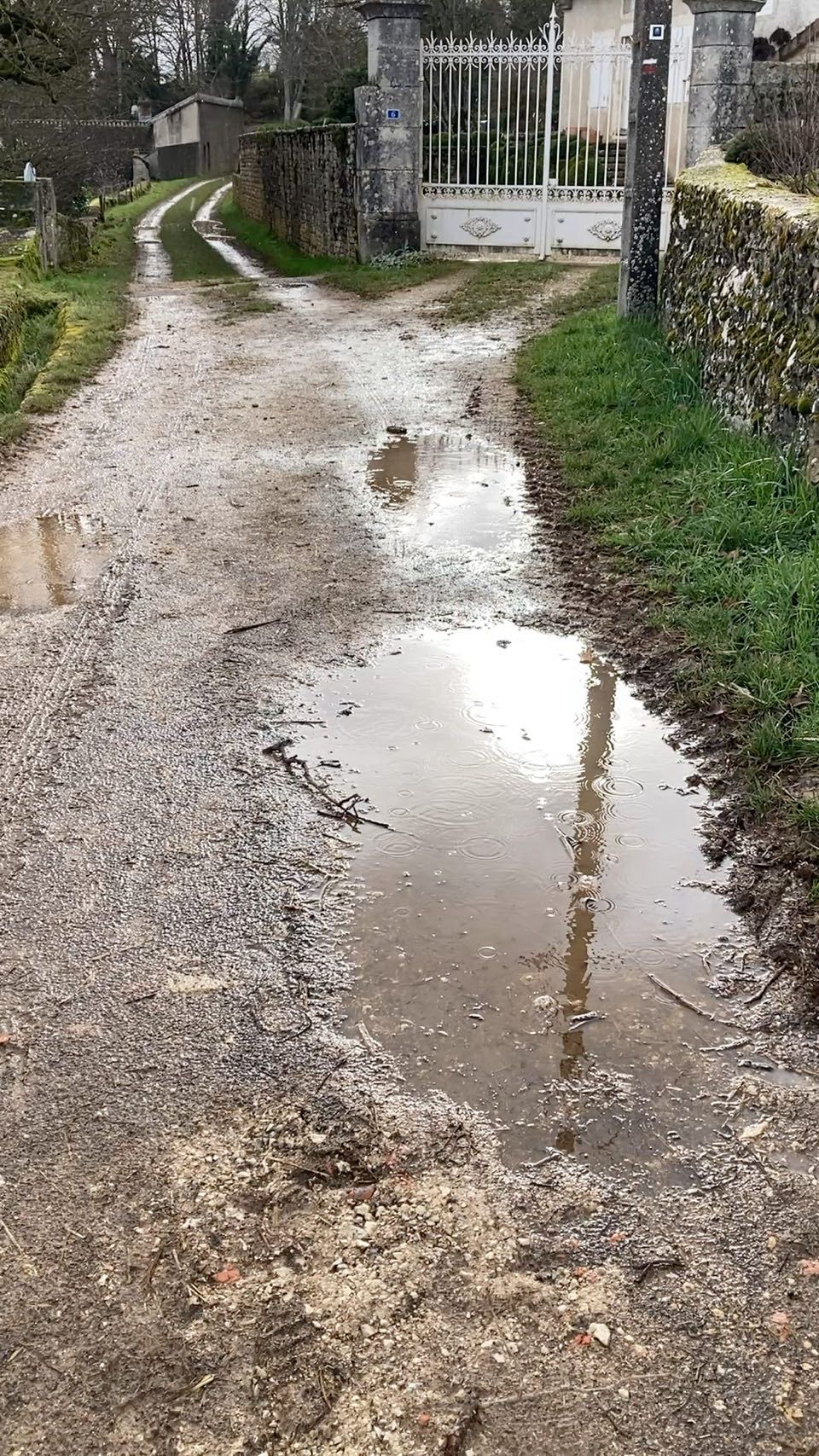 Après tant de pluie, tout est trempé, le sol spongieux, les chaussures boueuses. Le vent est glacial et je marche d’une traite jusqu’à la maison. 🏡