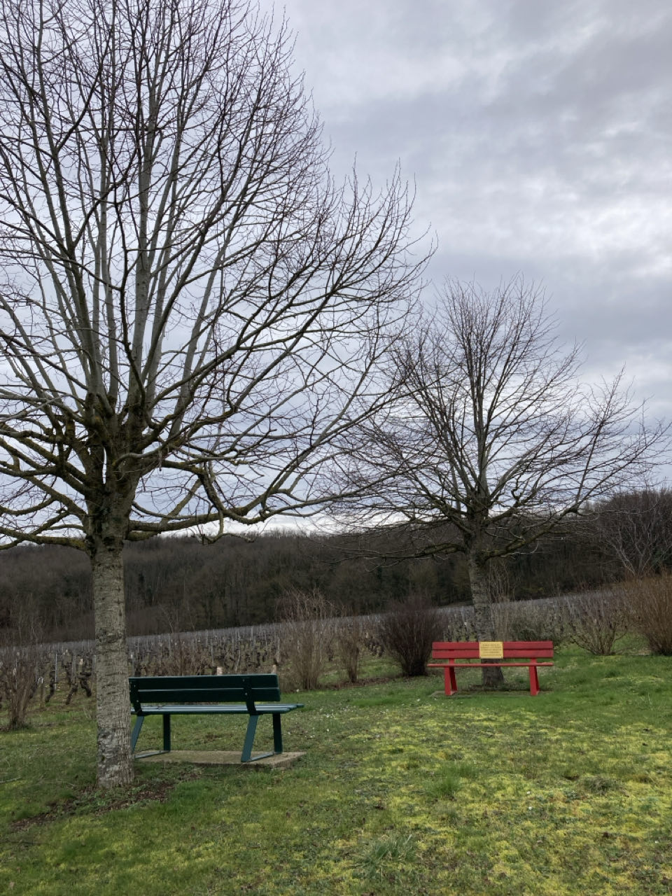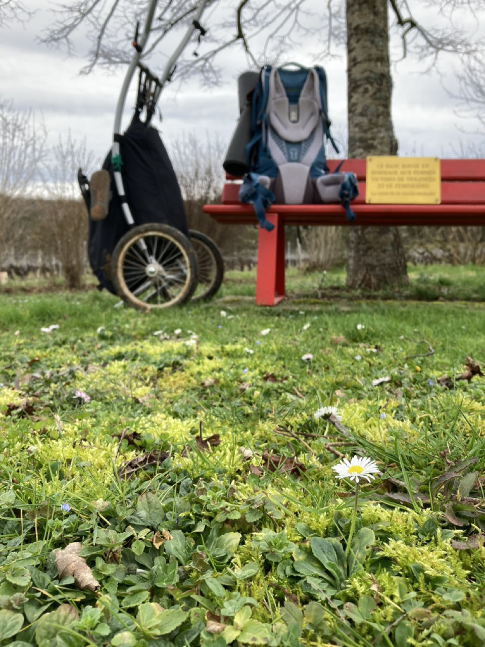 Devant ce banc, mes premières fleurs de l’année, des pâquerettes.