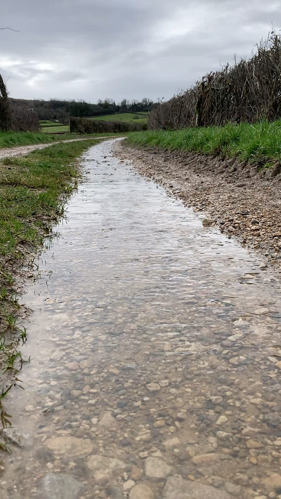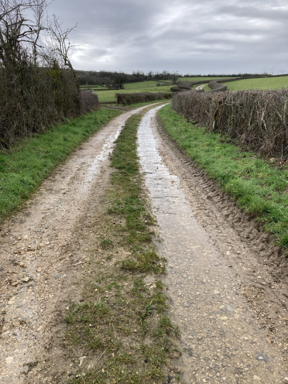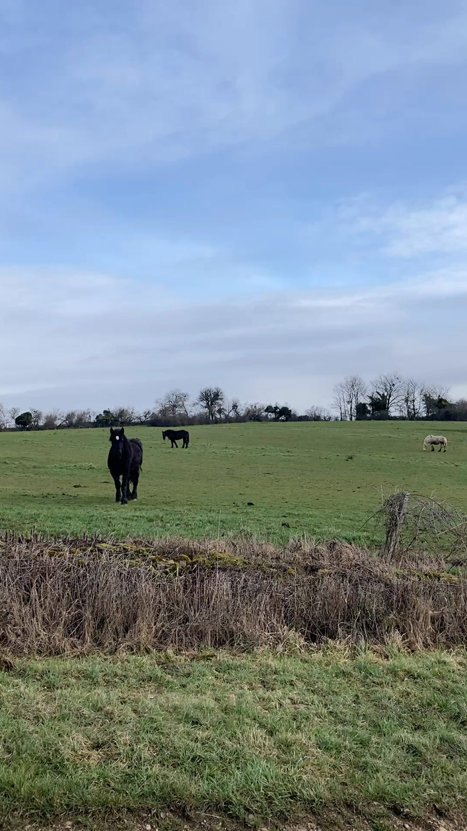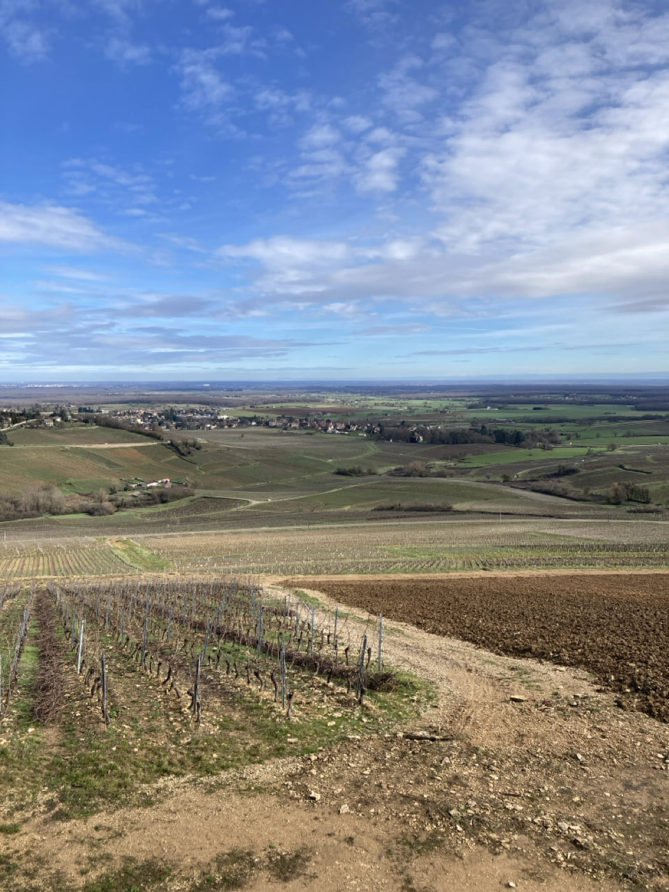 Sur les crêtes toute la journée et (incroyable) il ne pleut pas ! La vue est dégagée et j’aperçois le Mont Blanc. 🏔️ J’aime beaucoup cette partie du GR de la côte châlonnaise. Les paysages sont variés : boisements, maillage bocager, prairies sauvages, prés, quelques champs cultivés et des petits villages. Y’a beaucoup de chevaux dans ce coin. 🐴