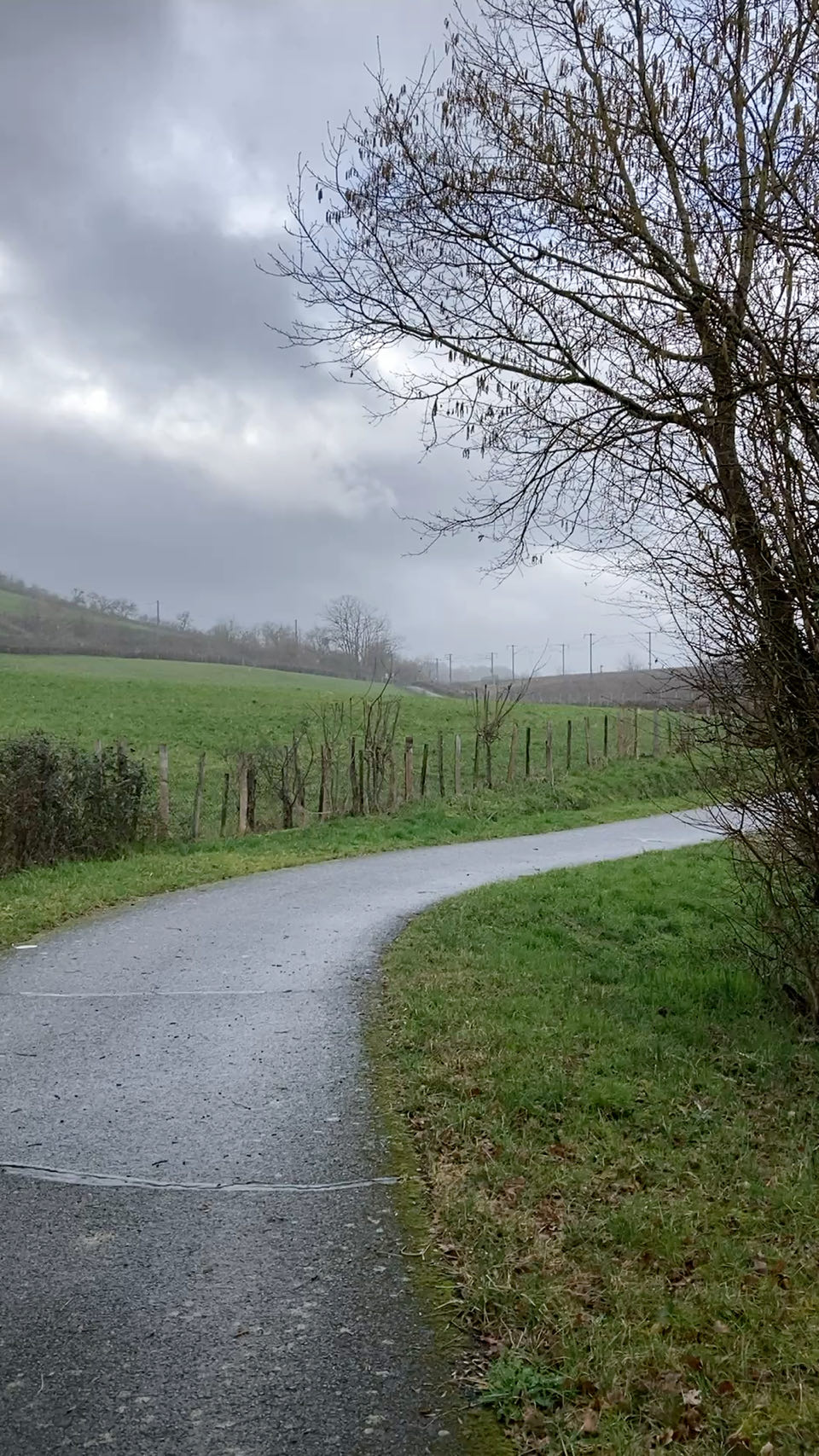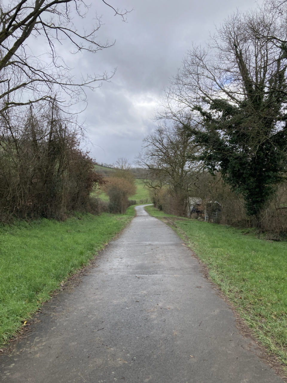 15h30. Y’a un rayon de soleil. Je m’arrête sur la route. Je respire le vent et ce bout de ciel bleu. J’observe un groupe de choucas s’envoler de l’arbre en face de moi.