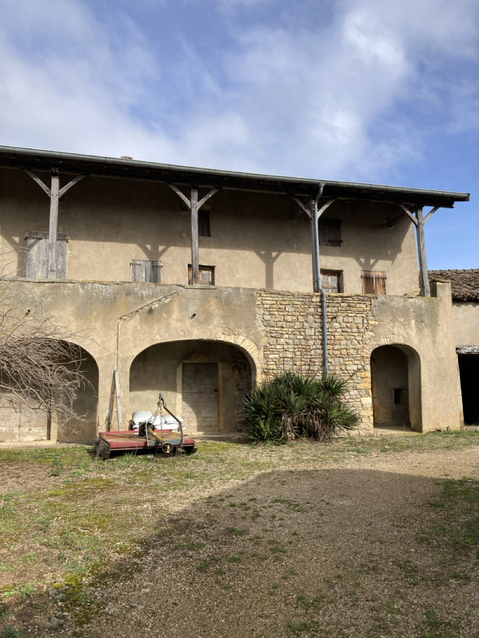 🏠 J’ai quitté Milly-Lamartine ce matin en compagnie de Lise qui m’a parlé des maisons traditionnelles avec leurs balcons mâconnais : un large balcon en pierre couvert formant une coursive devant la maison et soutenu par des piliers en triangle (voir photo).