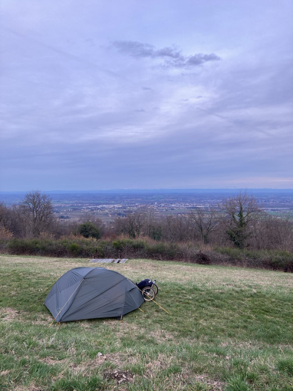 De nuit, c’est le repère des jeunes. Et cette église qui s’éclaire le soir, pile sur ma tente 😓