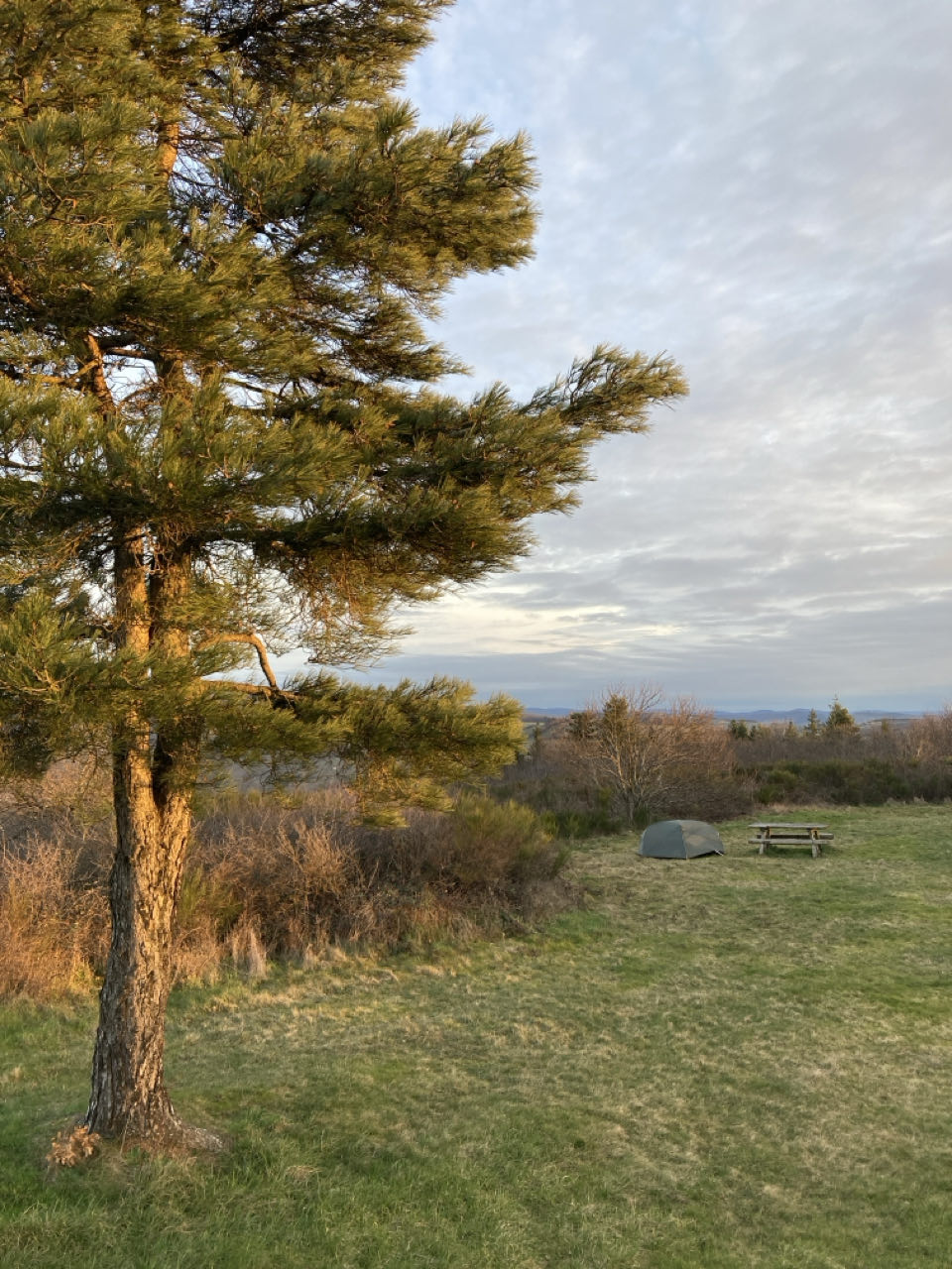 Réveil avec un rouge-gorge et une tente totalement sèche ce matin, inespéré !