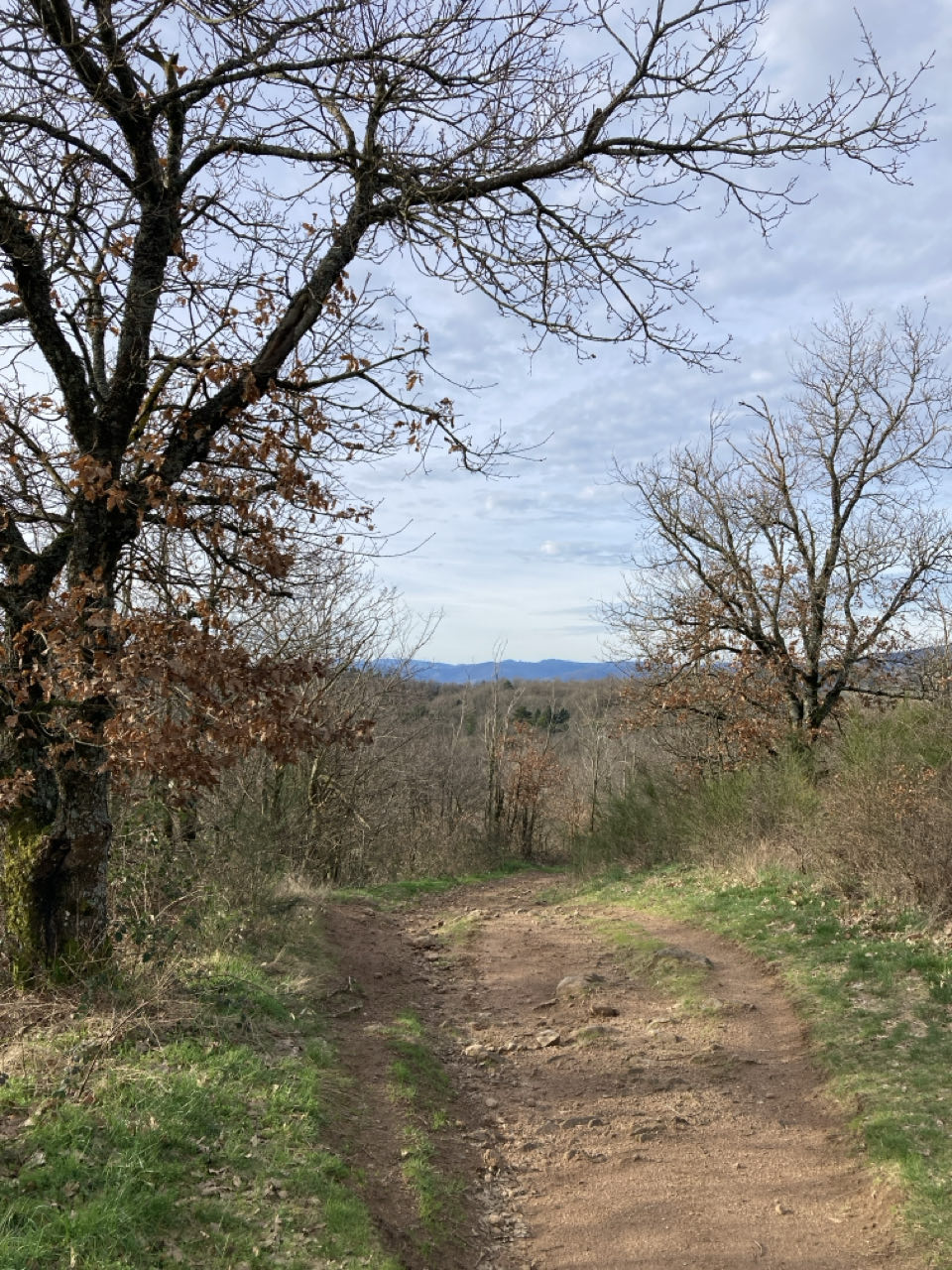 La suite de la descente est spectaculaire avec la plaine et les Alpes enneigées au loin. 🏔️ Le printemps arrive, les lézards sortent. Bruits de feuilles sèches lorsqu’ils se cachent. 🦎