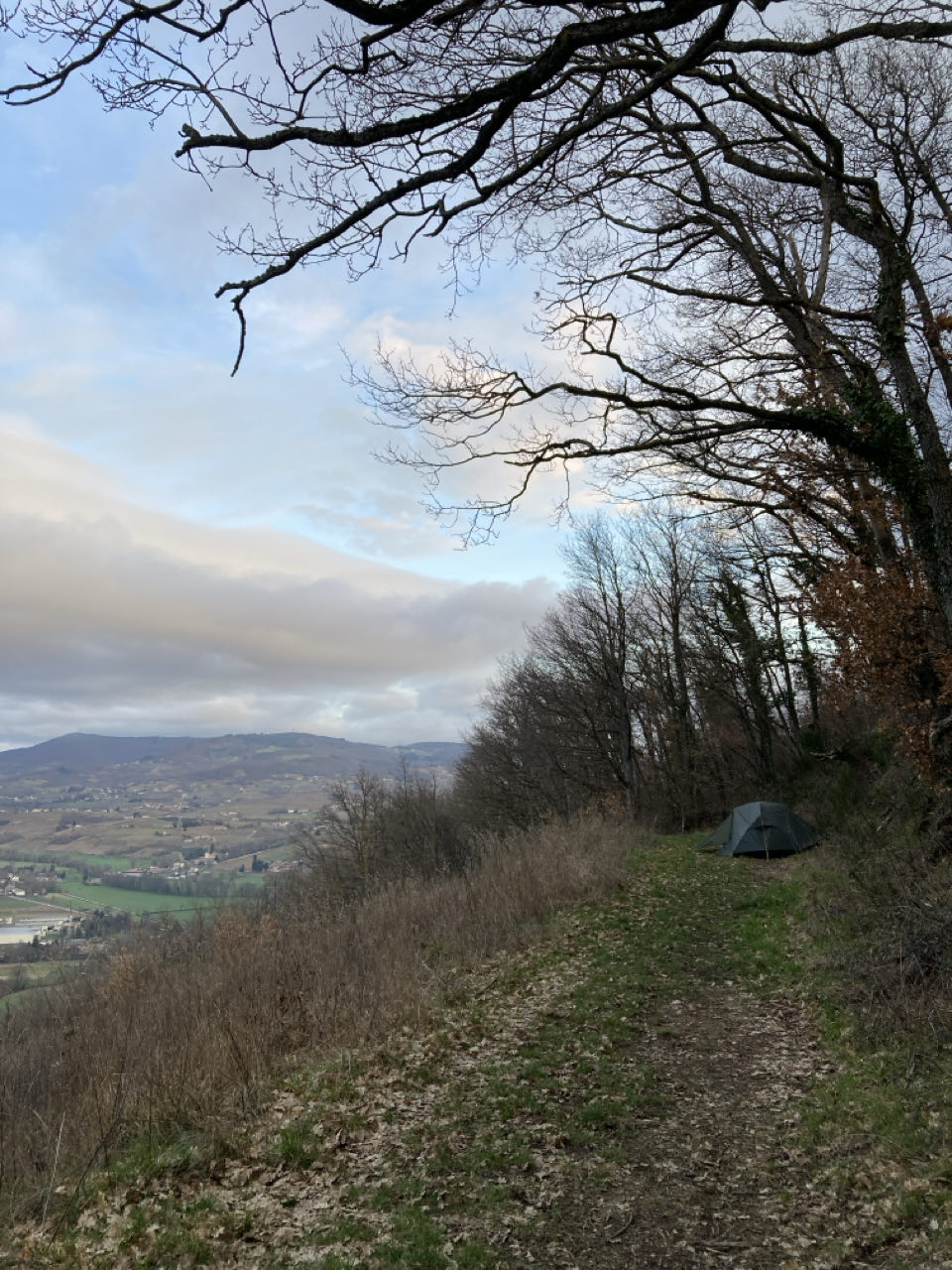Les nuages ne passent pas même s’il ne bruine pas en permanence, c’est par vague. Pourtant, aucune pluie n’était prévue aujourd’hui et la météo n’en prévoit toujours pas en ce moment même. Je grimpe alors que de légères gouttelettes tombent. 🌧️ Cette montée m’épuise. Je me demande comment je vais finir demain avec trois fois plus de dénivelé 🤔