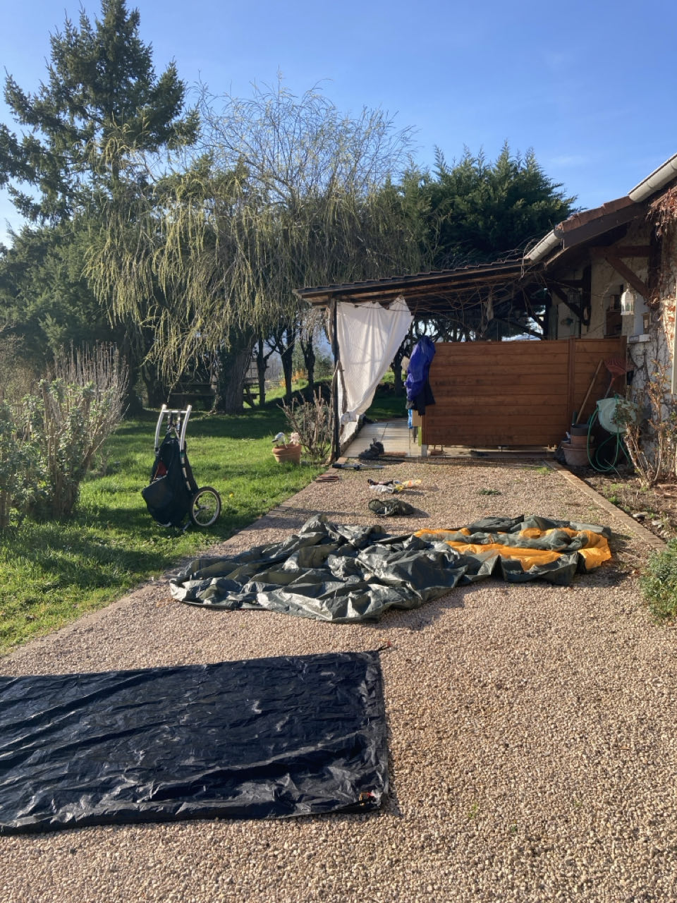 On prend un thé dehors et elle me dit que je peux planter ma tente dans son jardin si je veux. ⛺️ J’hésite à fond ! Car mon petit bivouac avec point de vue a l’air chouette mais ça me tente bien de passer du temps avec elle et son mari qui doit rentrer de l’hôpital en fin d’après-midi.