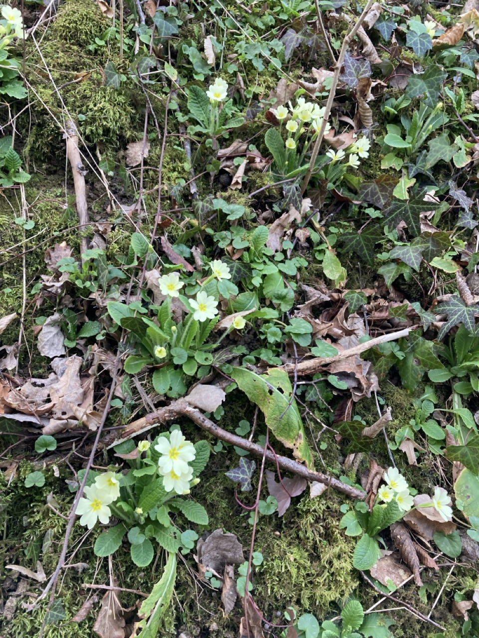 La lumière du soir est belle, les primevères fleurissent. Je me concentre là-dessus. Je suis dans la région des cerises. Dommage, ce n’est ni la saison des fleurs ni la saison des fruits ! 🍒