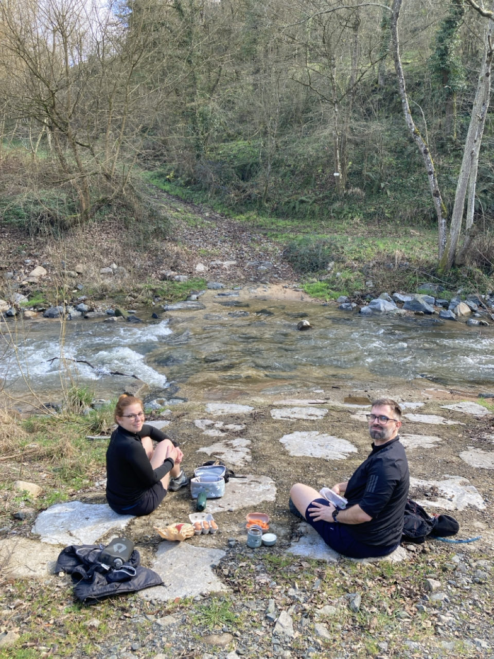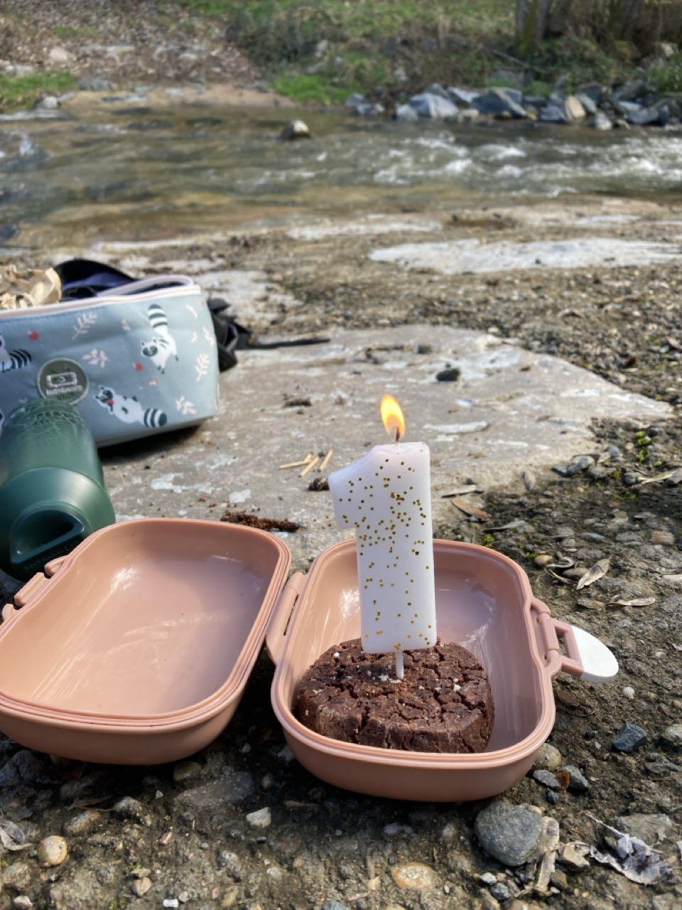12h. Mon amie Adeline me rend visite avec son compagnon Guilain pour une balade. Le soleil est revenu et c’est agréable. Nous pique-niquons au bord de l’eau et je souffle une bougie ! 🕯️