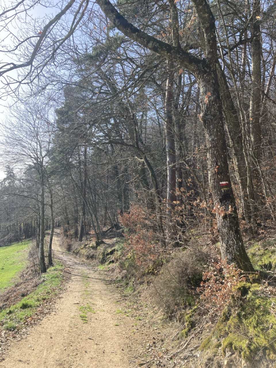 Je dors dans un petit bois hors sentier. J’avais vraiment envie d’être dans la forêt ce soir, je suis très contente. Le coin est magnifique et la saison officielle de chasse est finie. 🎉 Je devrai être tranquille ! Franchement, c’était pas gagné de le trouver parce que c’est pentu partout depuis ce matin… J’ai repéré ce minuscule sommet sur ma carte et je suis montée voir sans mes affaires avant de remonter avec. Dernier effort de la journée 😵💫