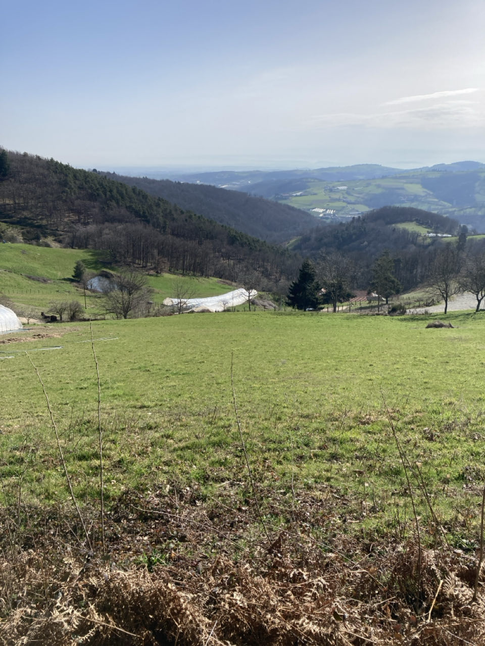 C’est ma dernière journée dans les monts du Lyonnais. Beaucoup de serres pour le maraîchage dans cette partie là. Demain je traverse la vallée, direction le Pilat.