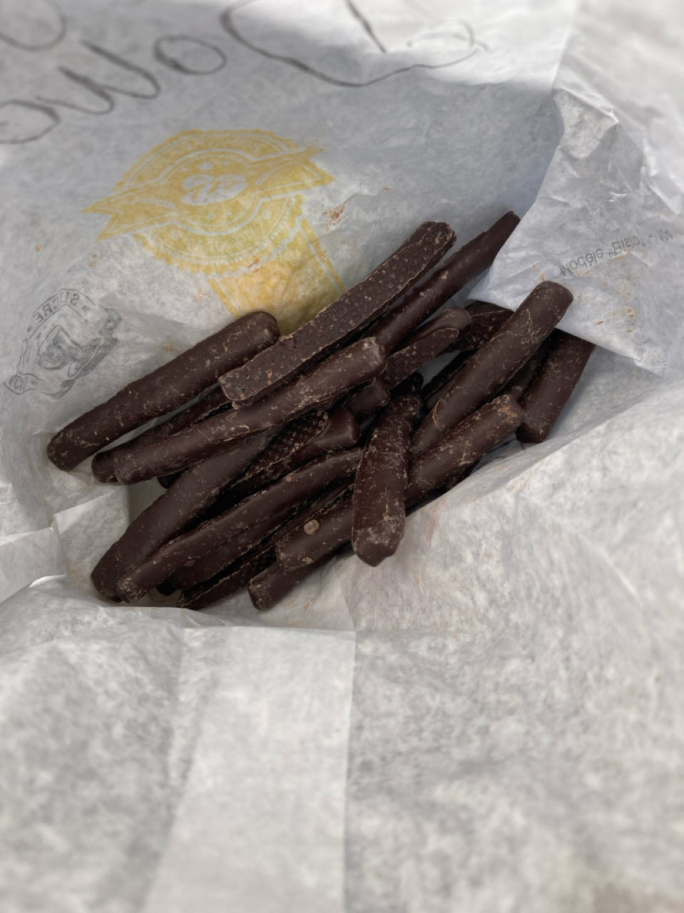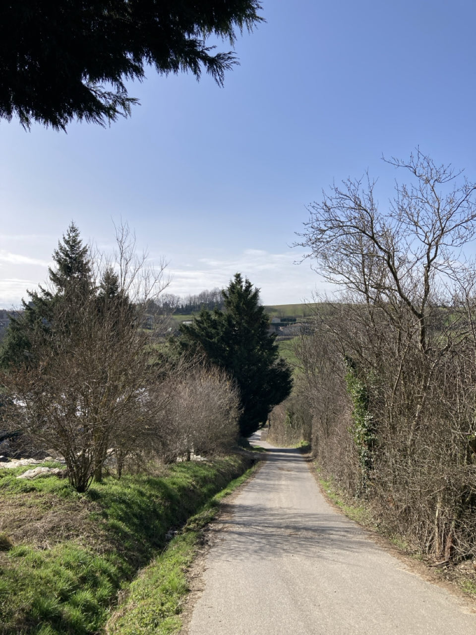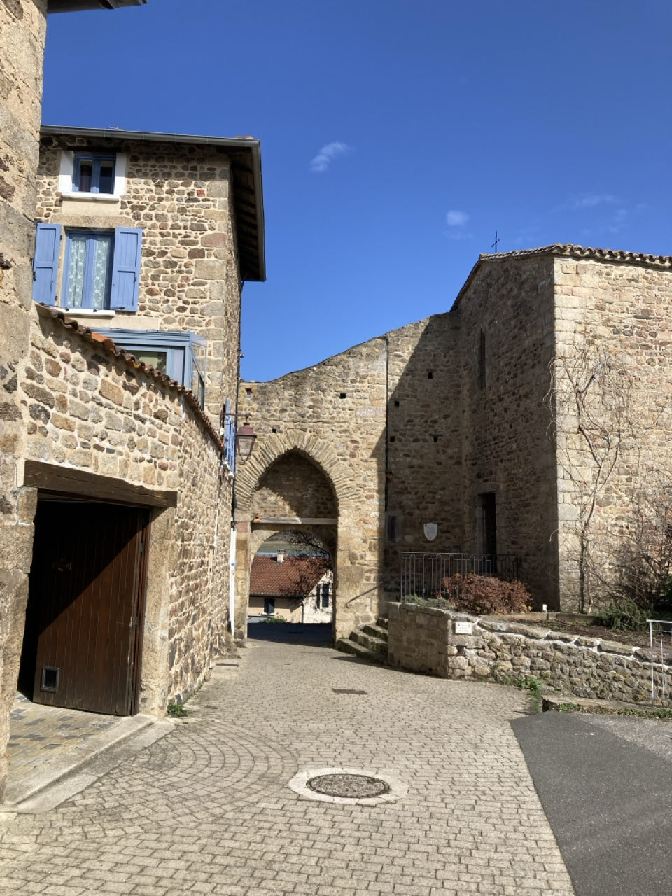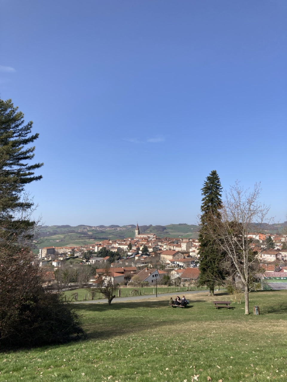 Pique-nique sur un banc à Saint-Martin-en-Haut. Bourg sympathique. Petit vent frais mais soleil. J’ai totalement craqué : j’ai acheté 100 grammes d’orangettes à la boulangerie 😁