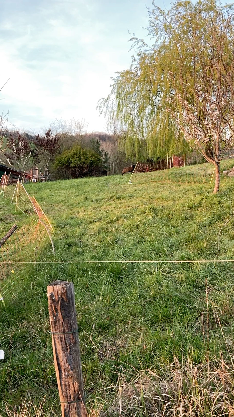 À la fin d’une balade, on croise ces deux moutons. Je pense que le bélier sautille pour épater la brebis…