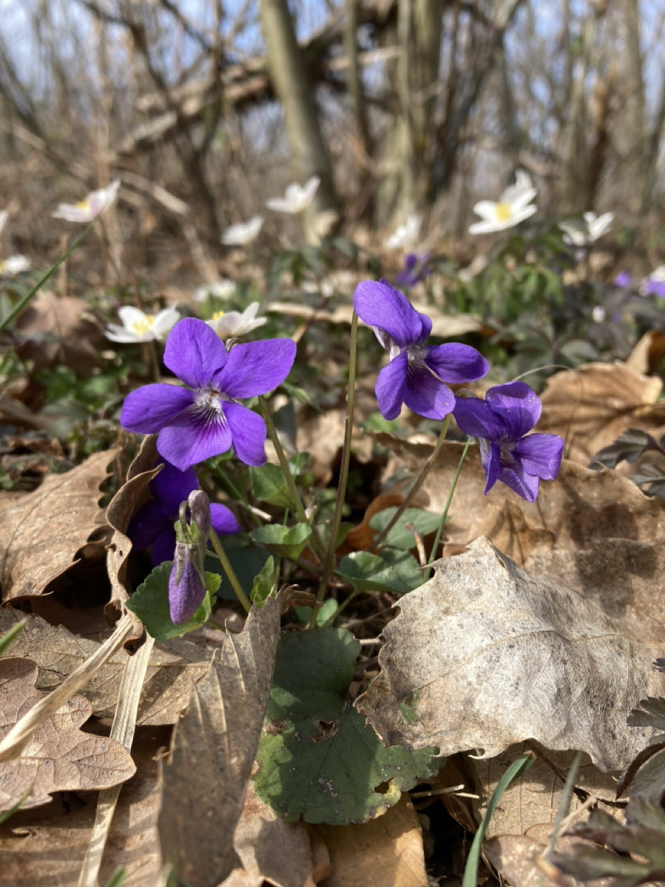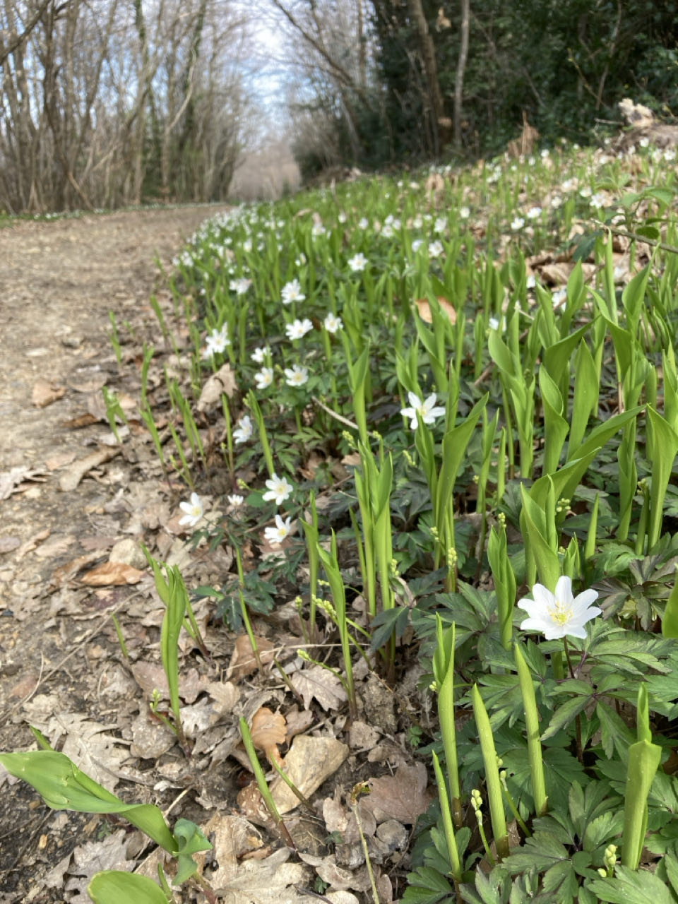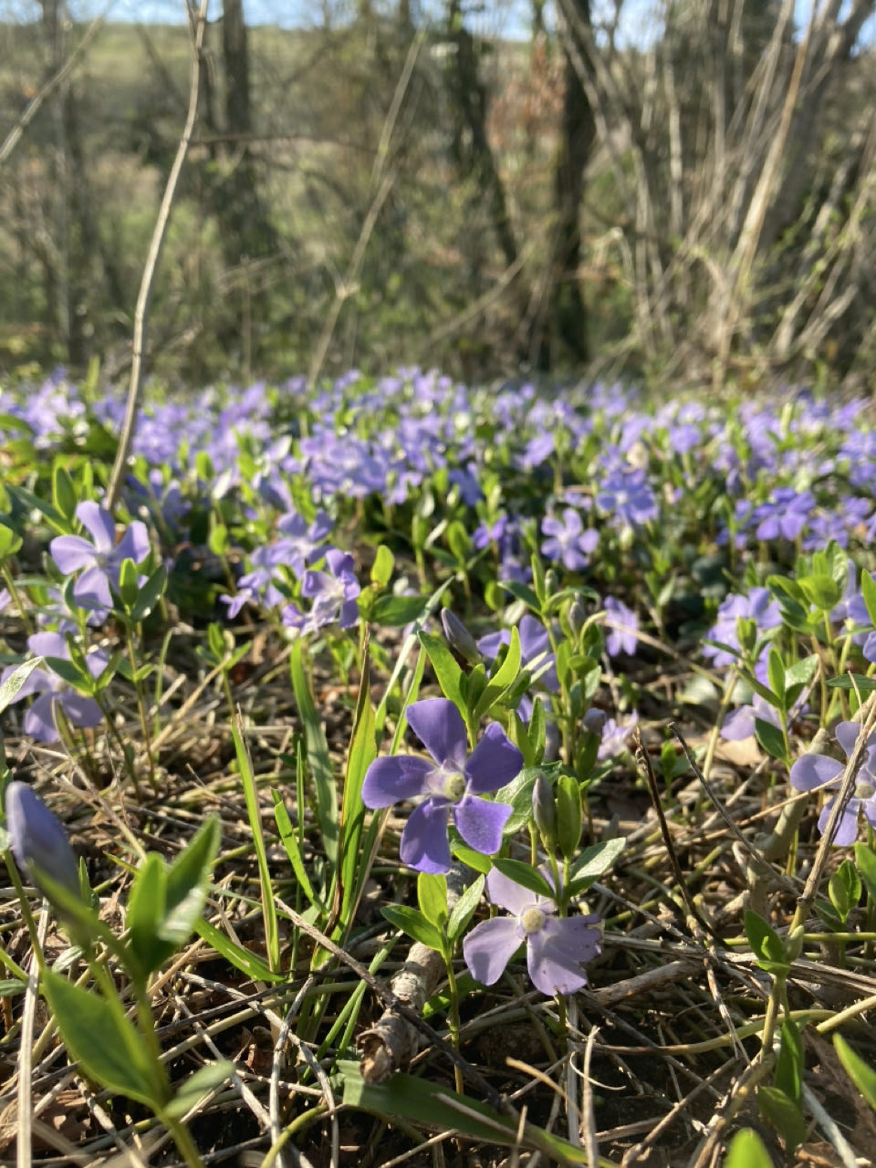 Justin est arrivé ! Une semaine tranquille avec balades et moments calmes à la cabane. Les fleurs sortent par centaines, violettes, anémones et pervenches tapissent les bords des chemins.