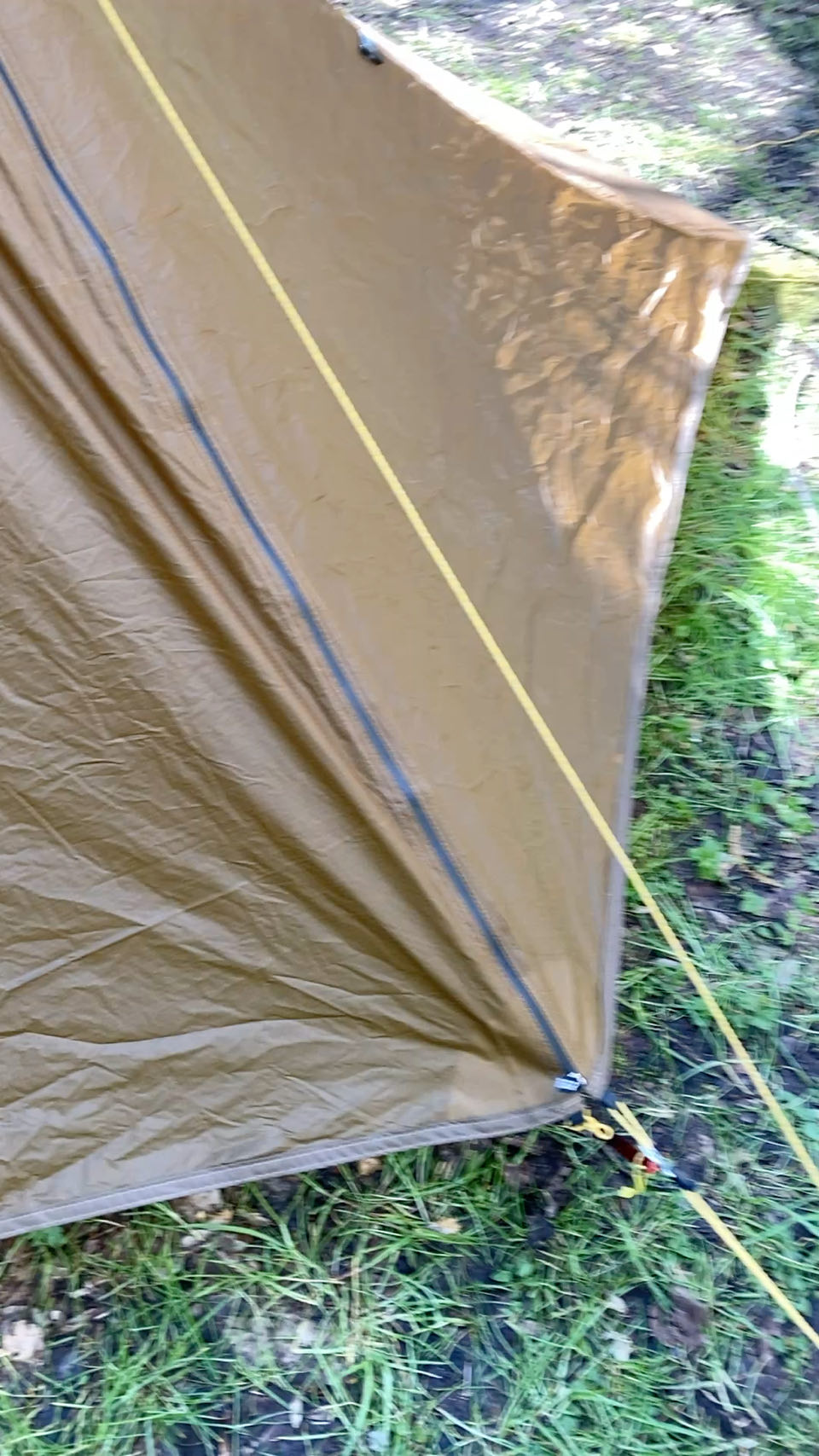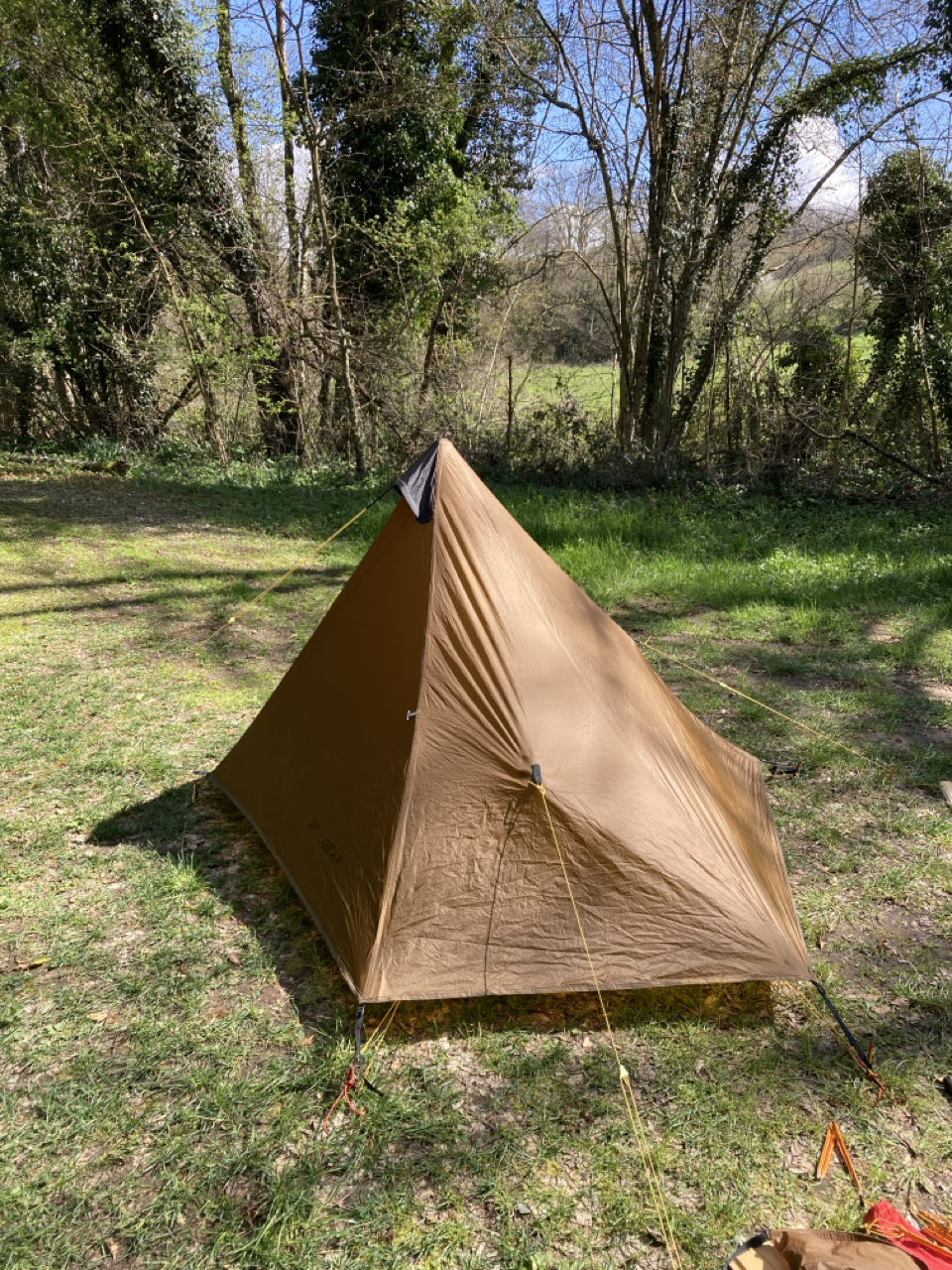 - nouvelle tente ultra légère 1 place (moins d’un kg) style « tarp » qui se monte avec un bâton de marche. Fini le dôme spacieux de ma 2 places.