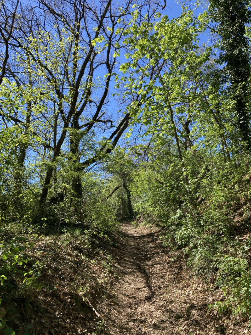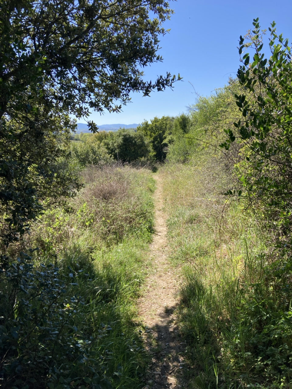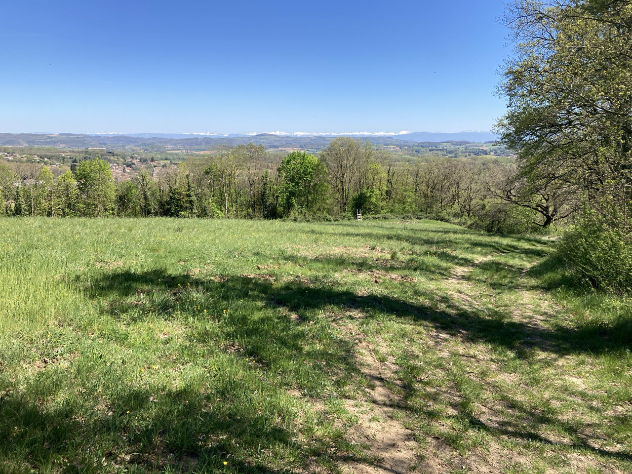 Il est encore tôt, 17h. Je regarde la vue, je m’ennuie un peu, je fais des étirements, je me coupe les ongles, je pense, j’écris. Les jours sont déjà longs et je fais de petites étapes alors j’ai beaucoup de temps libre. Il y a quelque chose de trop brutal, un changement soudain que je n’ai pas encore intégré : quand je me suis arrêtée le 8 mars chez Sylvie il faisait froid le soir et la nuit tombait à 18h30. Depuis que je suis repartie, je n’ai jamais allumé mon réchaud et le soleil se coucher 2 heures plus tard.