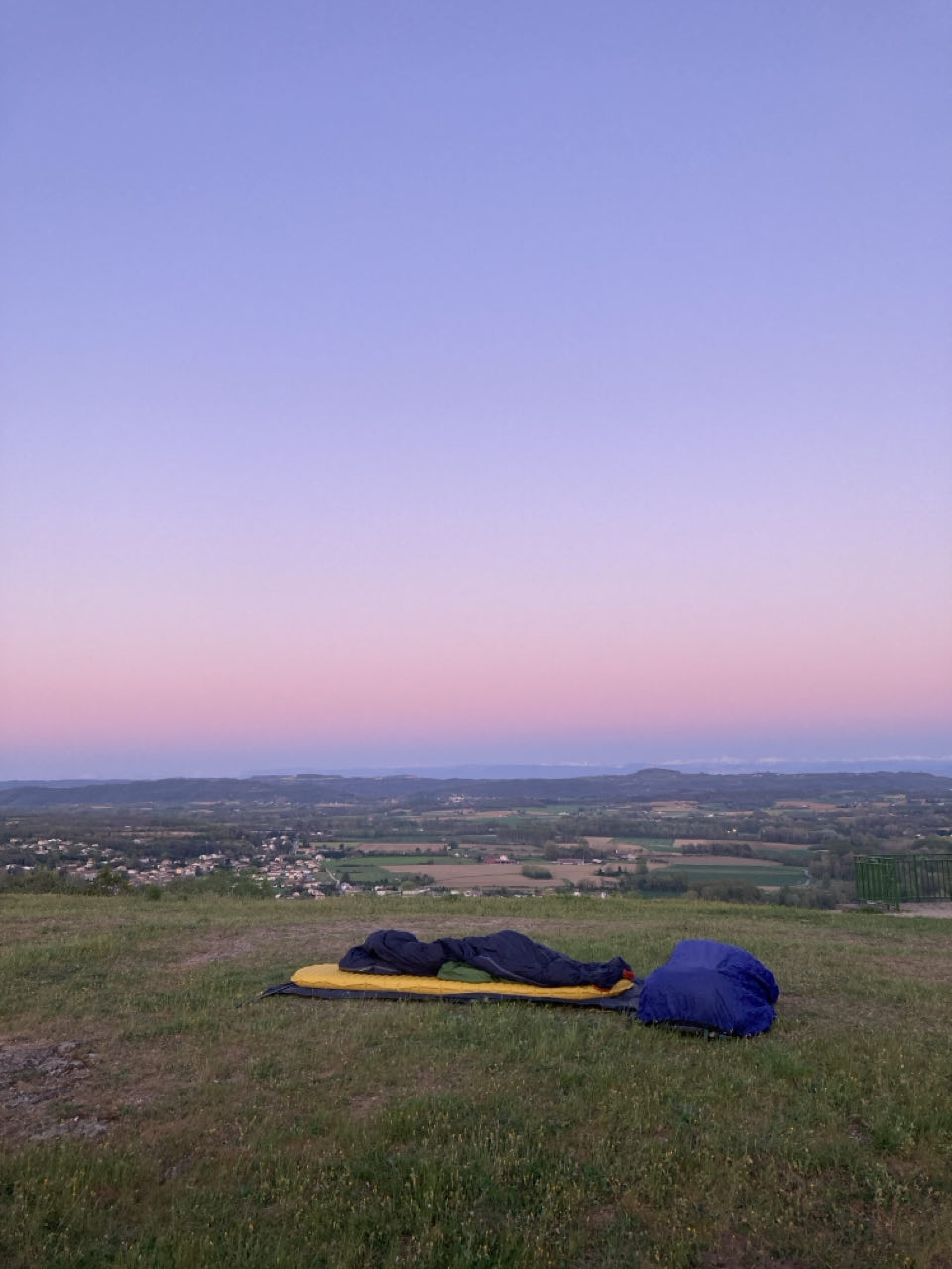 ✨ Au point de vue, l’herbe est rase et la couche de terre semble bien mince. Trop mince pour y planter des sardines. Je vais dormir à la belle étoile, sans ma tente. Passer un nuit sur ce promontoire sera ma manière de dire au revoir à la Drôme des collines.