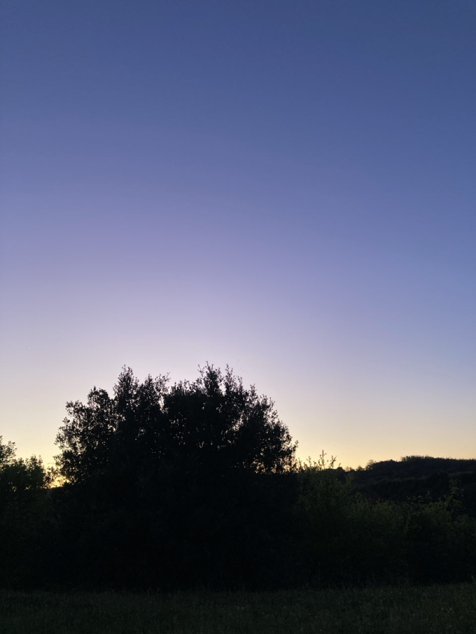 La rumeur de l’autoroute. Des chiens aboient. Des grillons. Les avions passent entre les étoiles. Le clocher du bourg sonne 21 heures. Il fait encore chaud. 15 degrés. Ciel bleu foncé. Vent tiède.