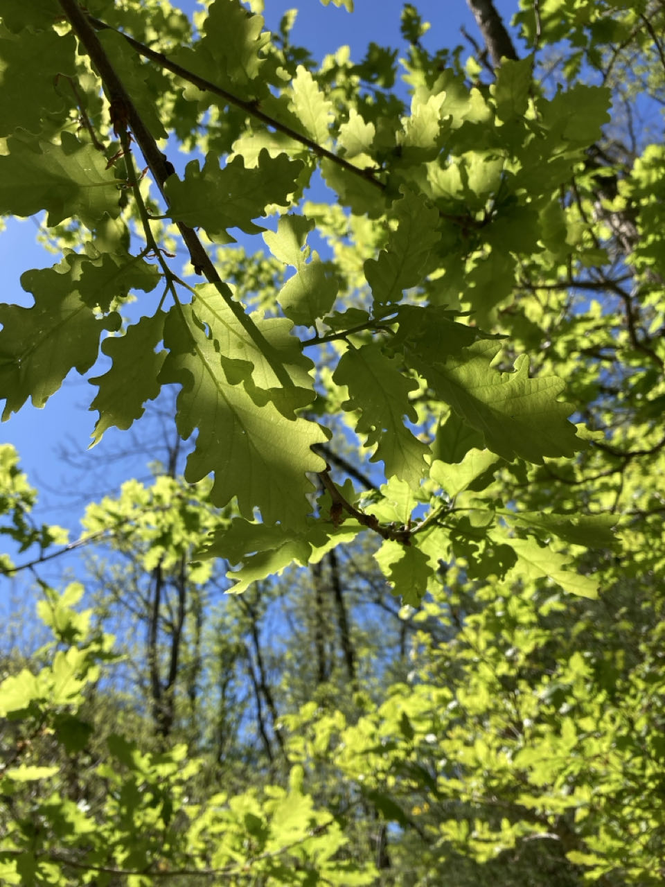 Les premières feuilles d’un chêne sessile dans la vallée de Sarras.