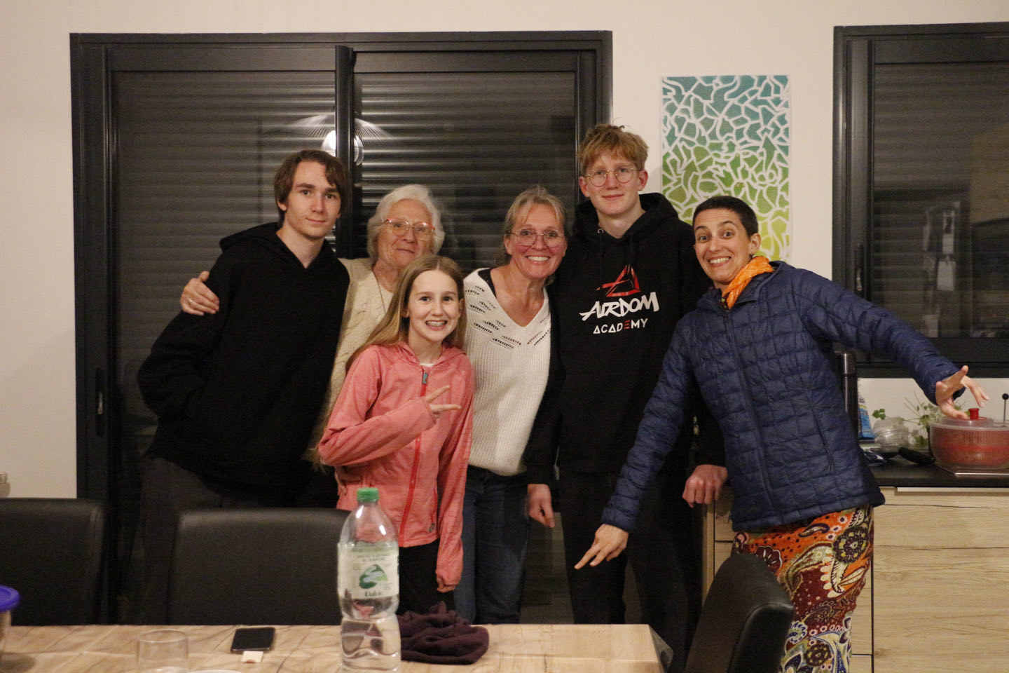 🍕 Un repas en famille : des enfants à la maman de Célia, je rencontre tout le monde ! Odette veille à ce que je ne manque de rien, surtout pour la nourriture !