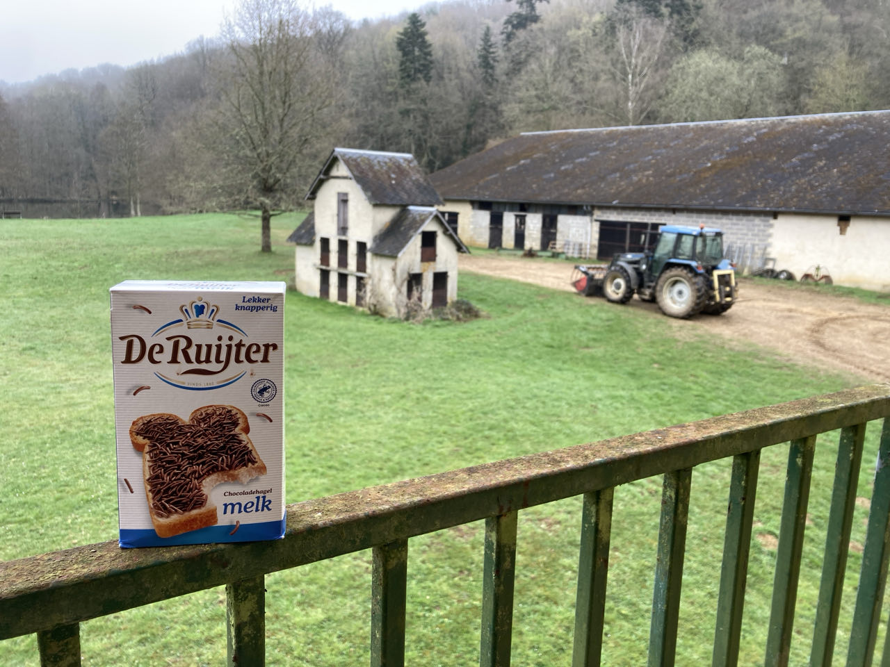 🍫 Johanna et Gerard viennent des Pays-Bas et m'offrent des pépites de chocolat. Iels m'expliquent comment les consommer comme aux Pays-Bas : une tartine beurrée et on soupoudre les pépites dessus !