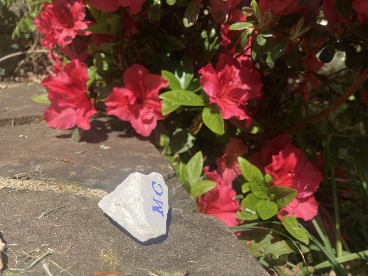 La pierre d’origine vient de chez Renée chez qui je me suis arrêtée en mars (ribambelle 8 et étape jour 15 sur mon carnet de marche)