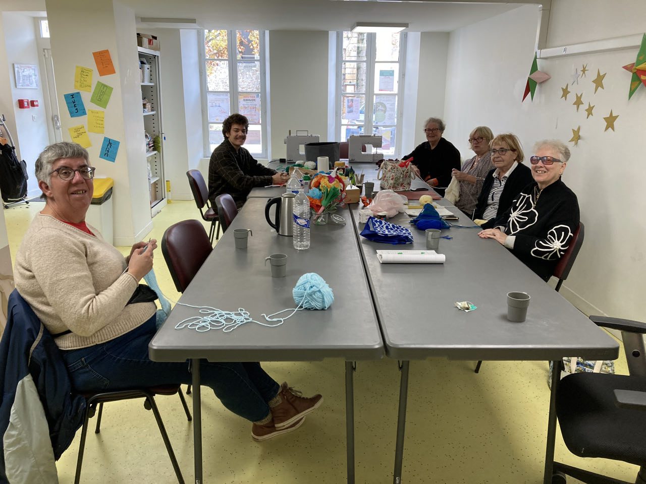 Je passe quelques heures à l’Espace de Vie Sociale avec les participantes de l’atelier couture et tricot. 🧶 Je reçois cette jolie pochette cousue par les participantes.