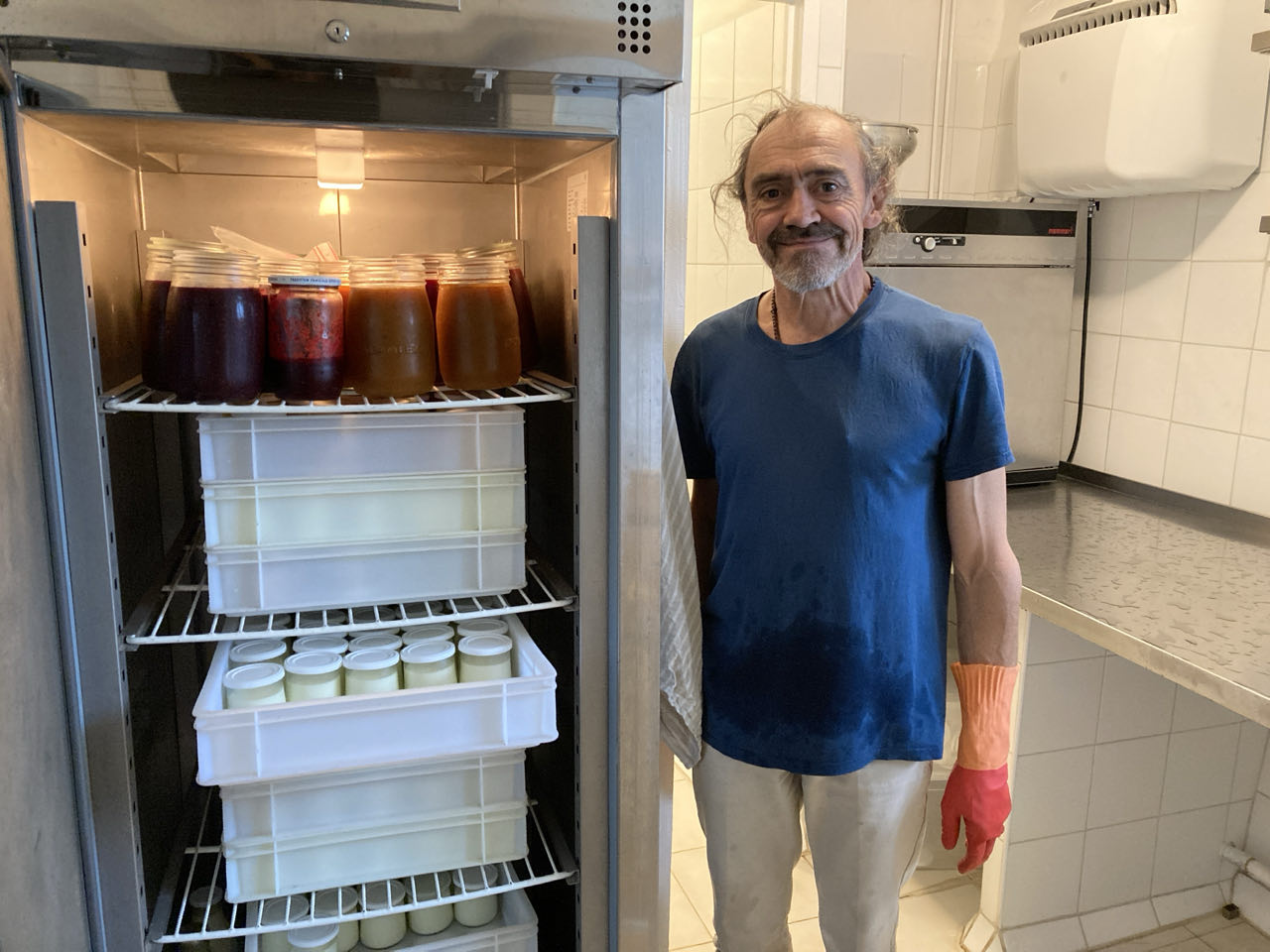 Éric produit des yaourts bio. Il fabrique entre 300 et 400 yaourts par semaine dans son atelier qu’il a aménagé dans sa maison.