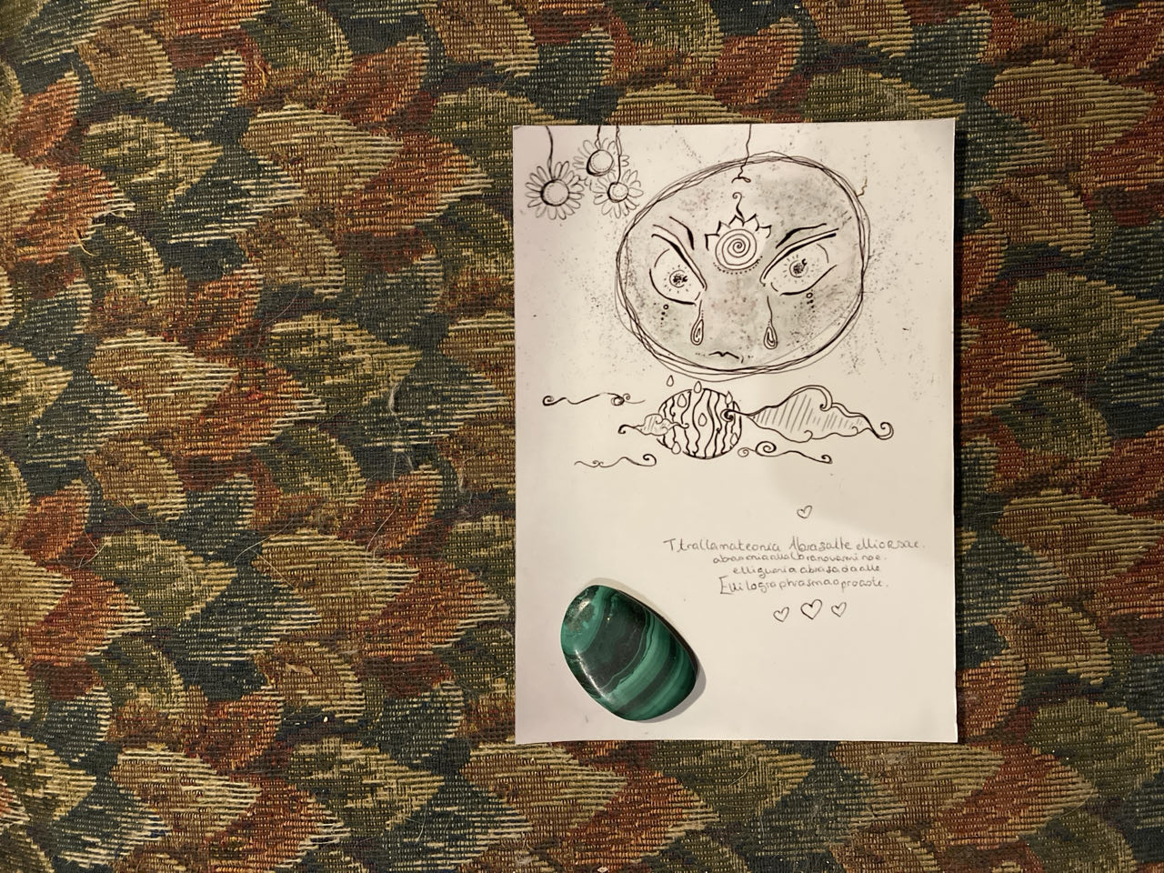 Il m’offre cette pierre verte qui appartenait à sa fille ainsi qu’une reproduction d’un de ses dessins. Ce sont des objets chargés en émotion pour lui.