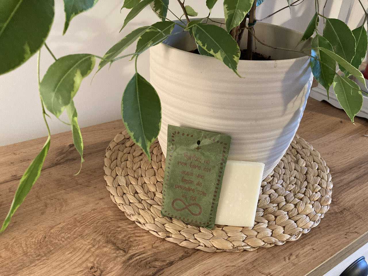 - un savon dans une jolie pochette « parfois, ne rien faire est aussi une façon de prendre soin de soi »