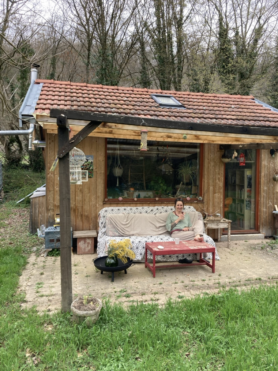 J’arrive chez Sylvie en Isère. Elle habite sur un terrain avec une petite cabane et une caravane dans laquelle je m’installe. Pour m’accueillir, un mot, un gros édredon rouge sur le lit et quelques fleurs dans deux petits vases.