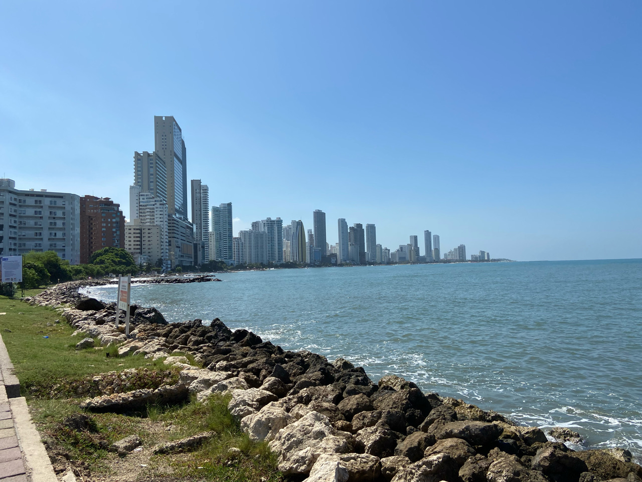 Bocagrande is a peninsula which ties into the historical centre of Cartagena. I walked from the Old City/Historical centre to the tip of the peninsula under the midday sun. Tall buildings and fancy hotels line the peninsula as do beach clubs. Either the peninsula is sinking or the sea rose cause the waves pour water into the flooded road.