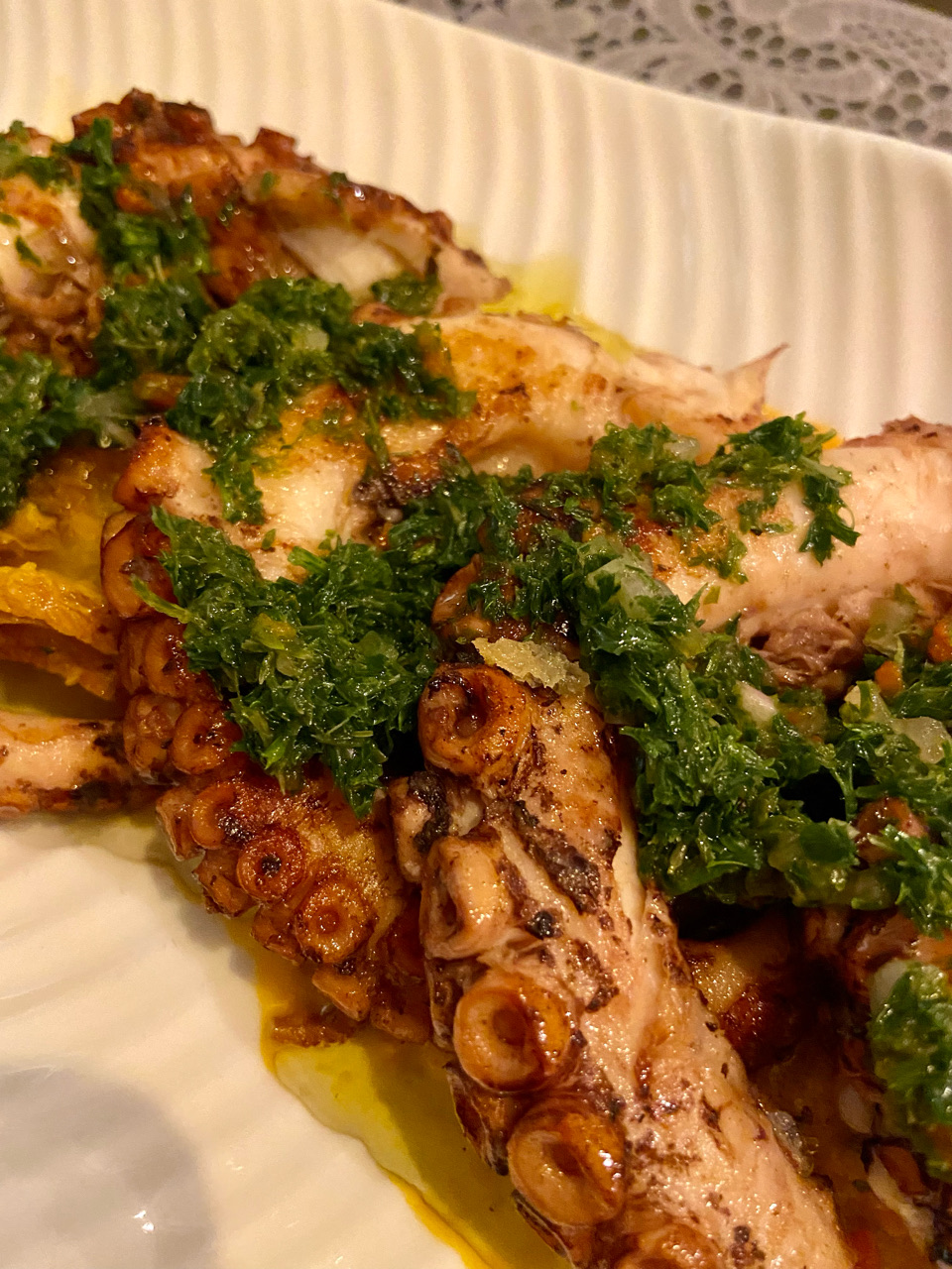 Well dinner was delicious. At Doña Lola in Getsemani. The not so polished but ever so cool part of Cartagena’s historical centre. Dinner: Grilled octopus on a bed of puréed yuca (tapioca) in coconut milk with cilantro.