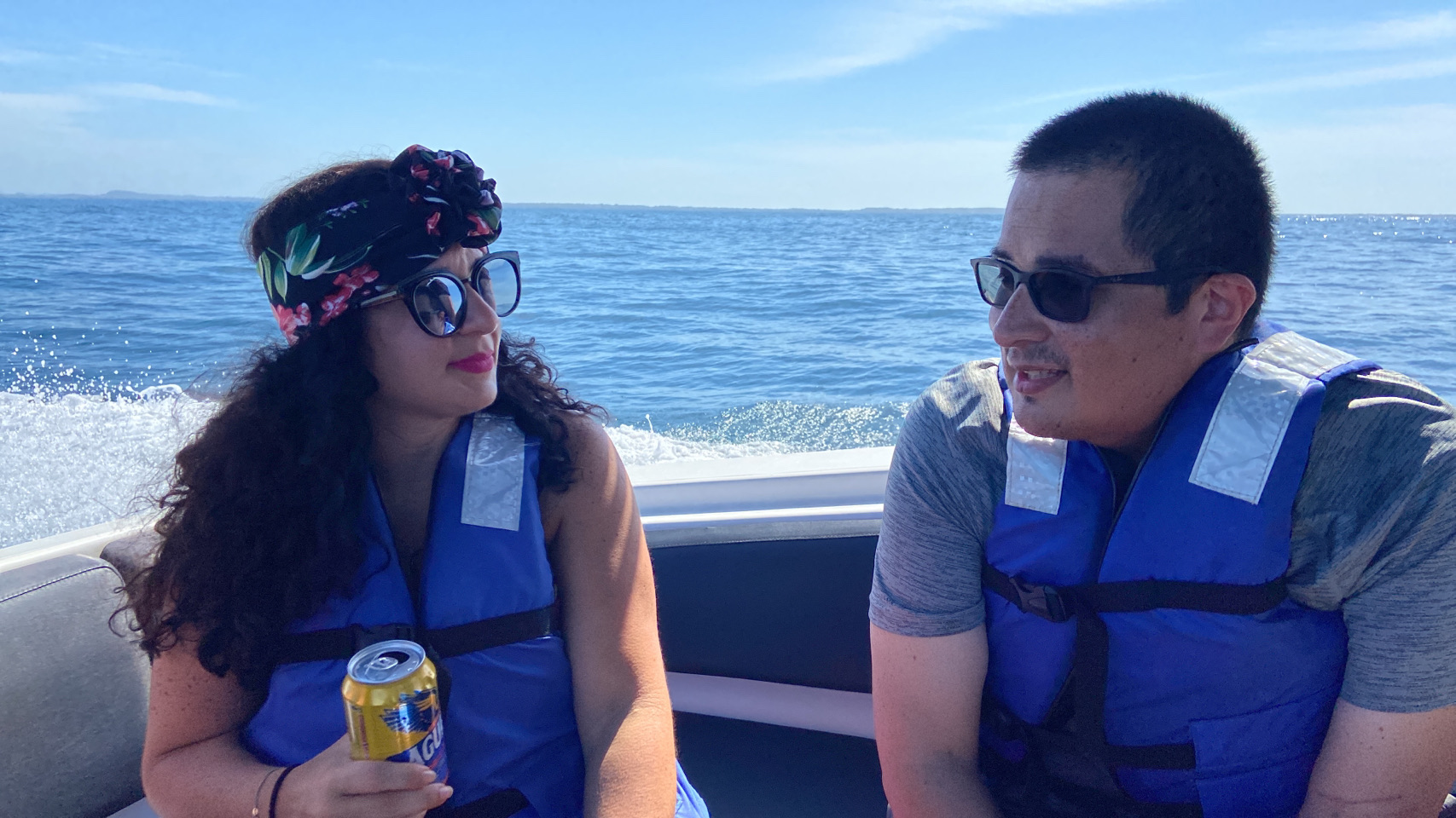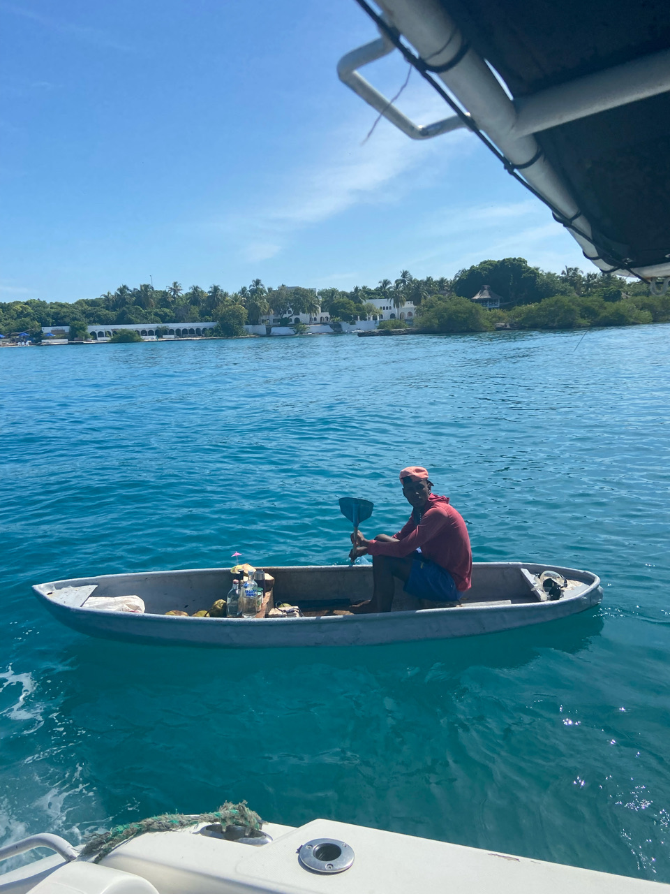 Lunch at Orika island with trip friends Cassandra and Gerardo. Delicious fried fish and coconut rice.