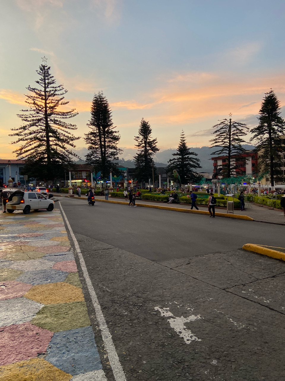 Kind of ended up in Santa Rosa de Cabal by accident but decided to explore. Really liked the energy of the city centre. No tourists to be seen but lively, bars, restaurants, Pool halls, desert halls and plenty of Santarosano chorizos to eat. We had grilled chorizo, a real treat. I even saw a guy making home made crisps/chips. And the Church lit up so pretty.