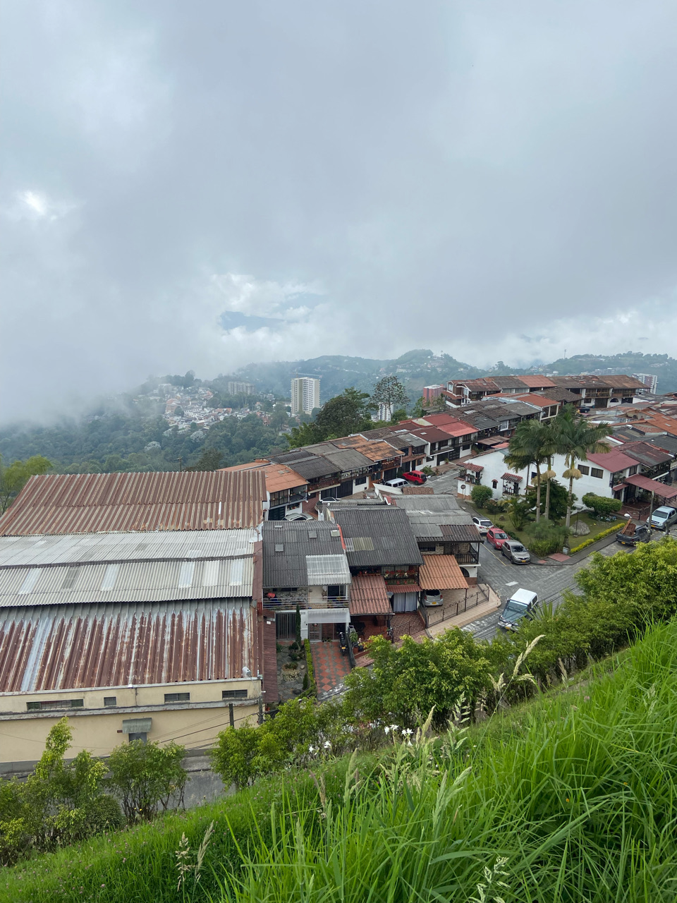 Manizales is well worth the visit for the bus ride + taxi ride to the centre alone. A virtual roller coaster up the peaks on which it is perched. It got my heart racing. 2200 m above sea level. Cool 19 C and pushing through clouds. Valleys and peaks connected by steep roads and the normal bustle of a Colombian city.
