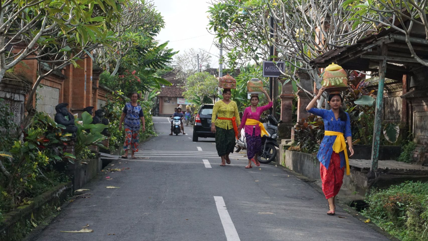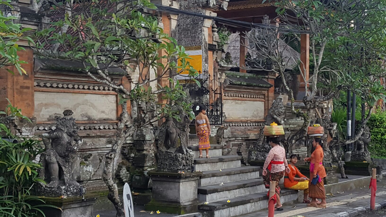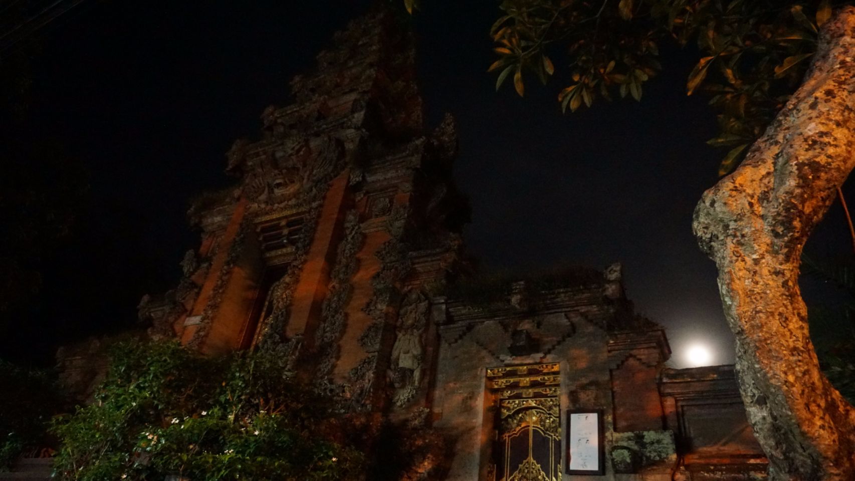 Primeiro passeio, vamos conhecer a cidade de Ubud, o centro cultural de Bali. Apesar de ser um lugar bem turístico é fácil presenciar a rotina e a cultura local fora dos holofotes. Fomos para participar de uma meditação na lua cheia, uma local queria aproveitar a energia da lua cheia e seus aprendizados em cura para fazer uma sessão de cura coletiva. O lugar é um restaurante vegano com um ambiente bem bacana e vive boa.