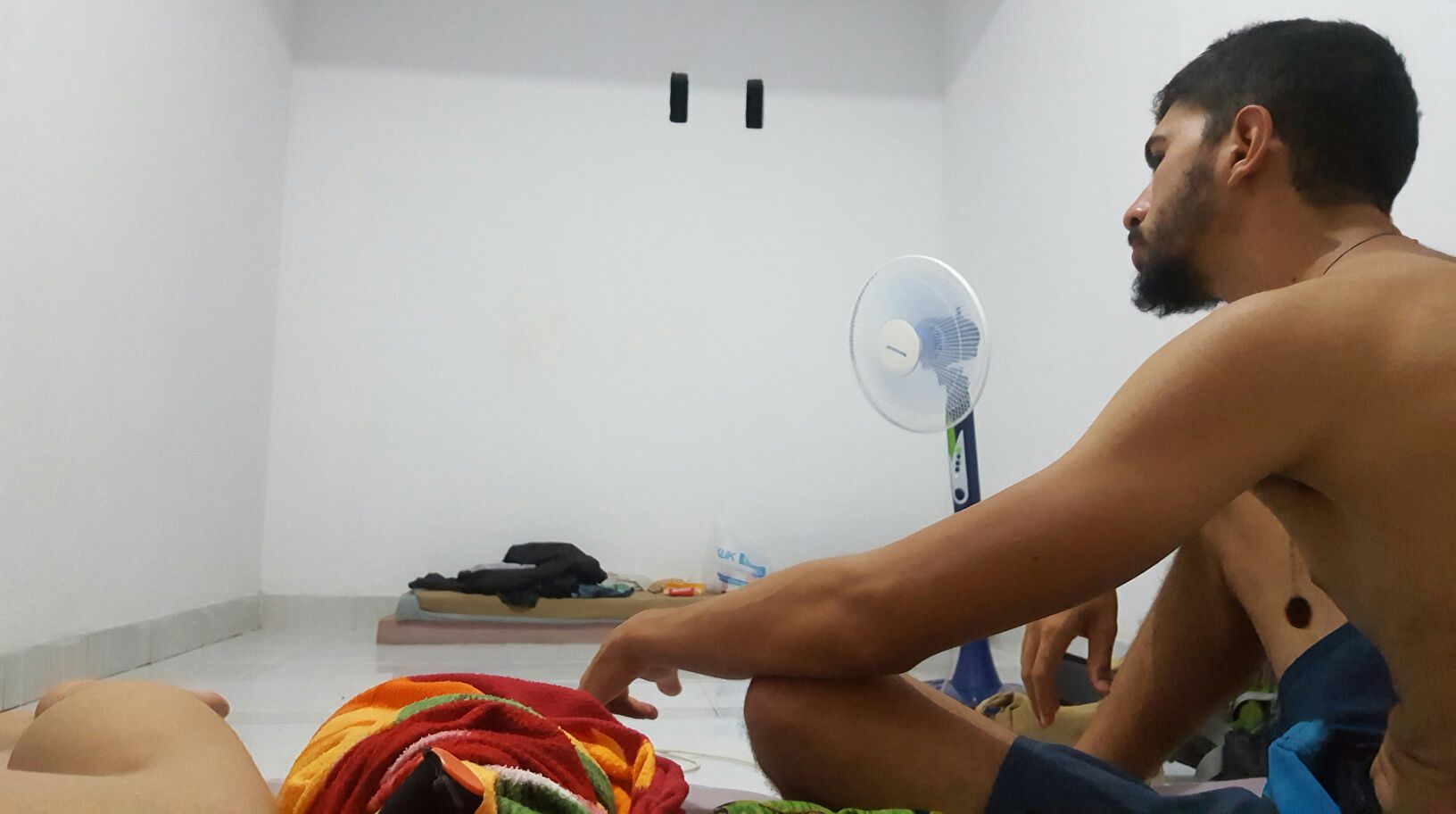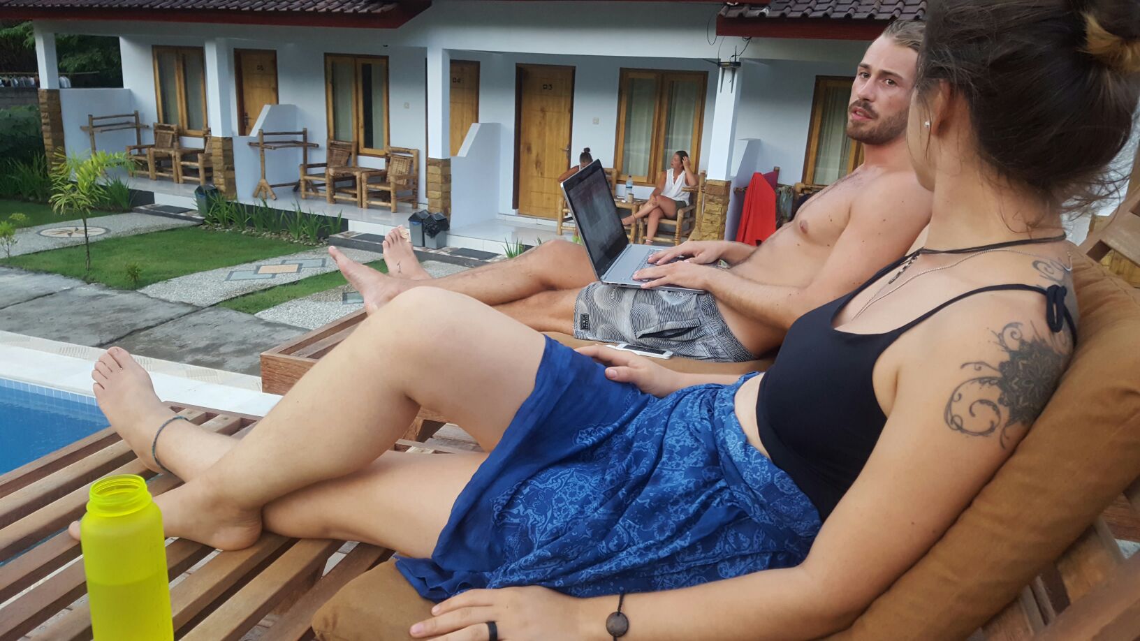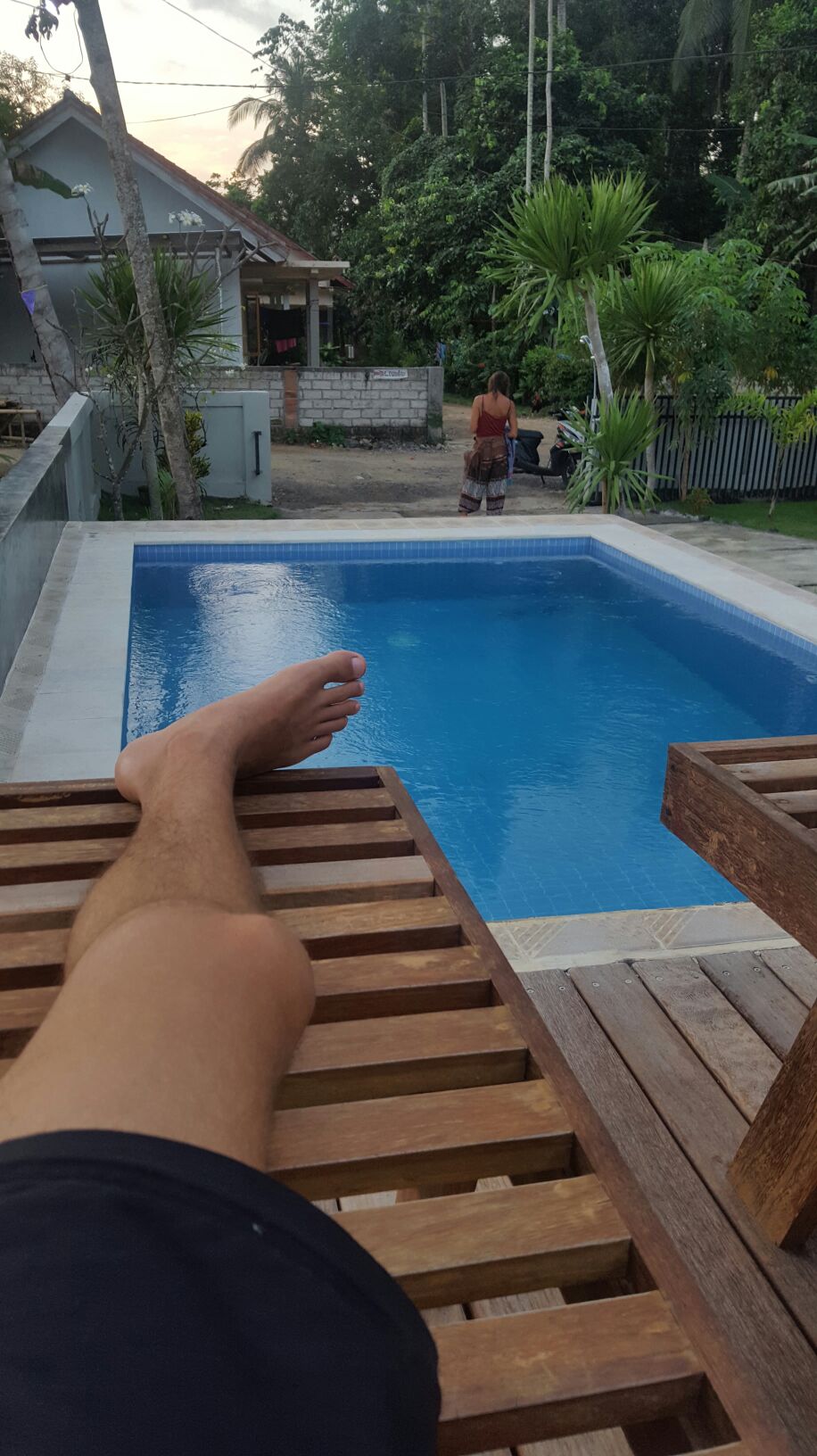 Nossa pousada, 50 mil rupias por pessoa com Café da manhã, cerca de 12 reais. A scooter sem registro, sem placa, sem velocímetro e marcador de combustível mas com rack pra prancha, 40 mil rupias por dia, 10 reais.