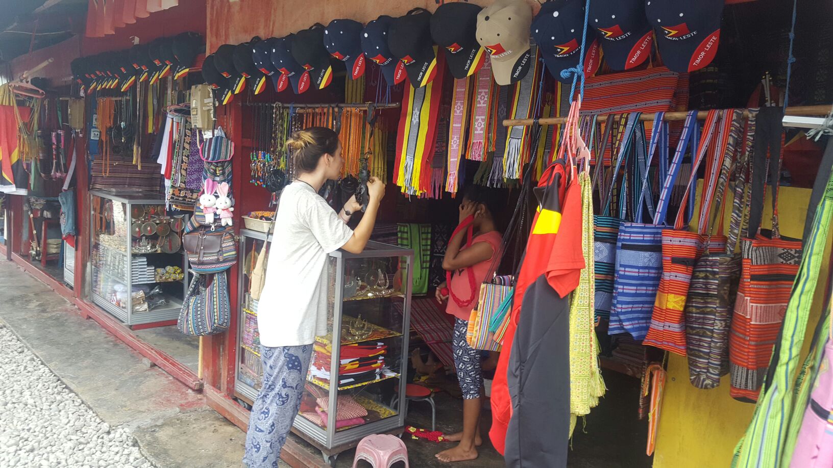 Estávamos procurando um supermercado, acabamos encontrando o mercado de tecidos tradicionais do Timor. Mari levou uma lembrancinha do Timor :)